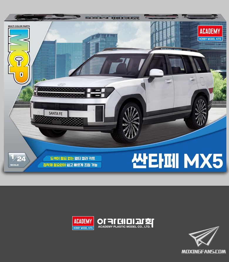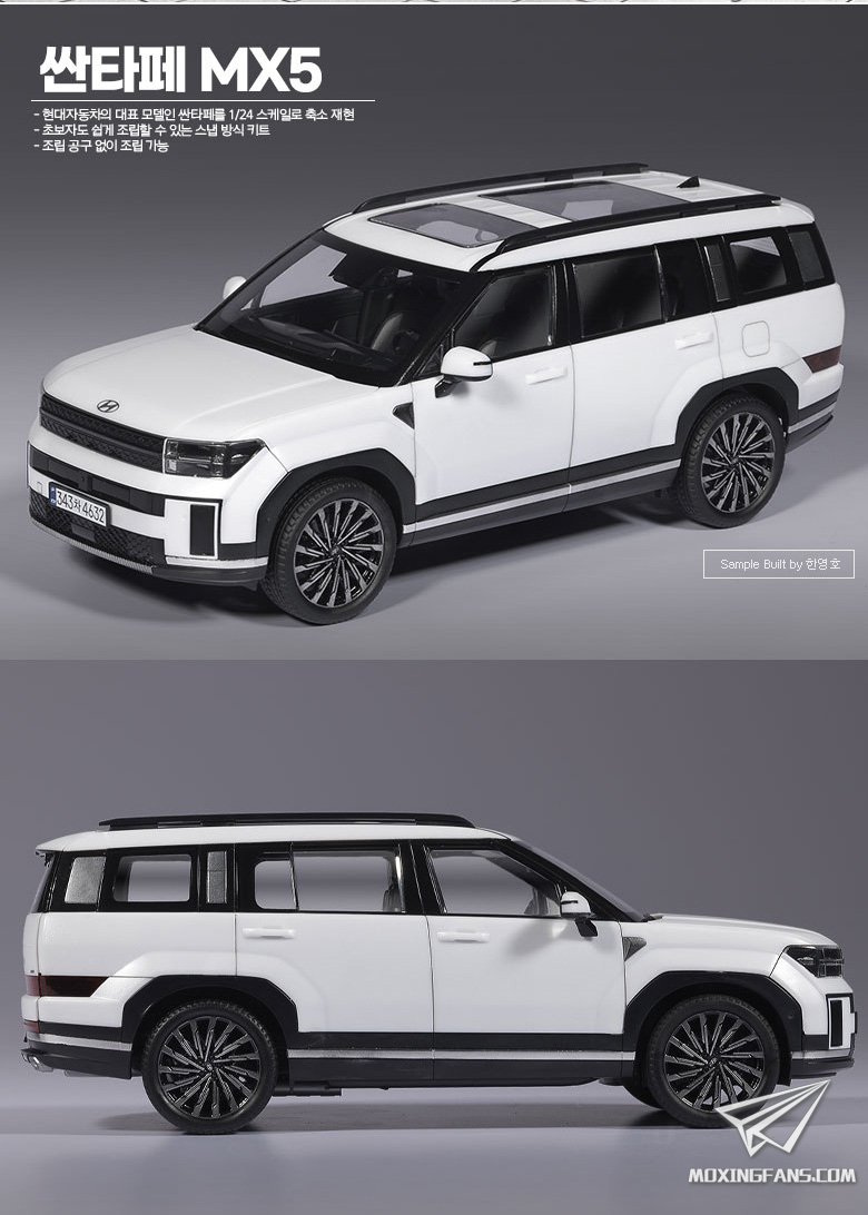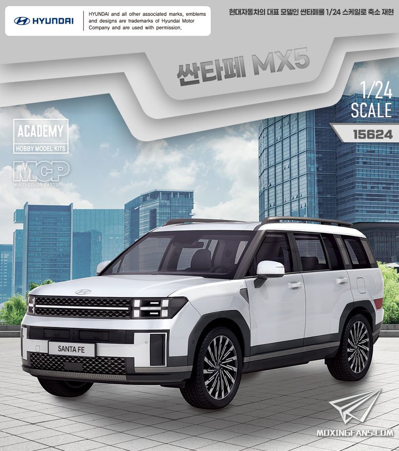爱德美预告了一款新品:1/24比例的现代圣达菲MX5。从介绍来看,这是一款免胶套件,组合起来比较方便,细节还算丰富,将于近期上市。