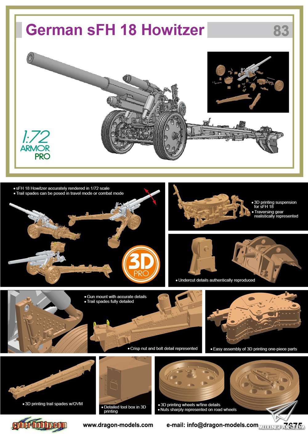 7675:1/72 s.FH.18重型野战榴弹炮(cyber-hobby限定版白盒序號#83)