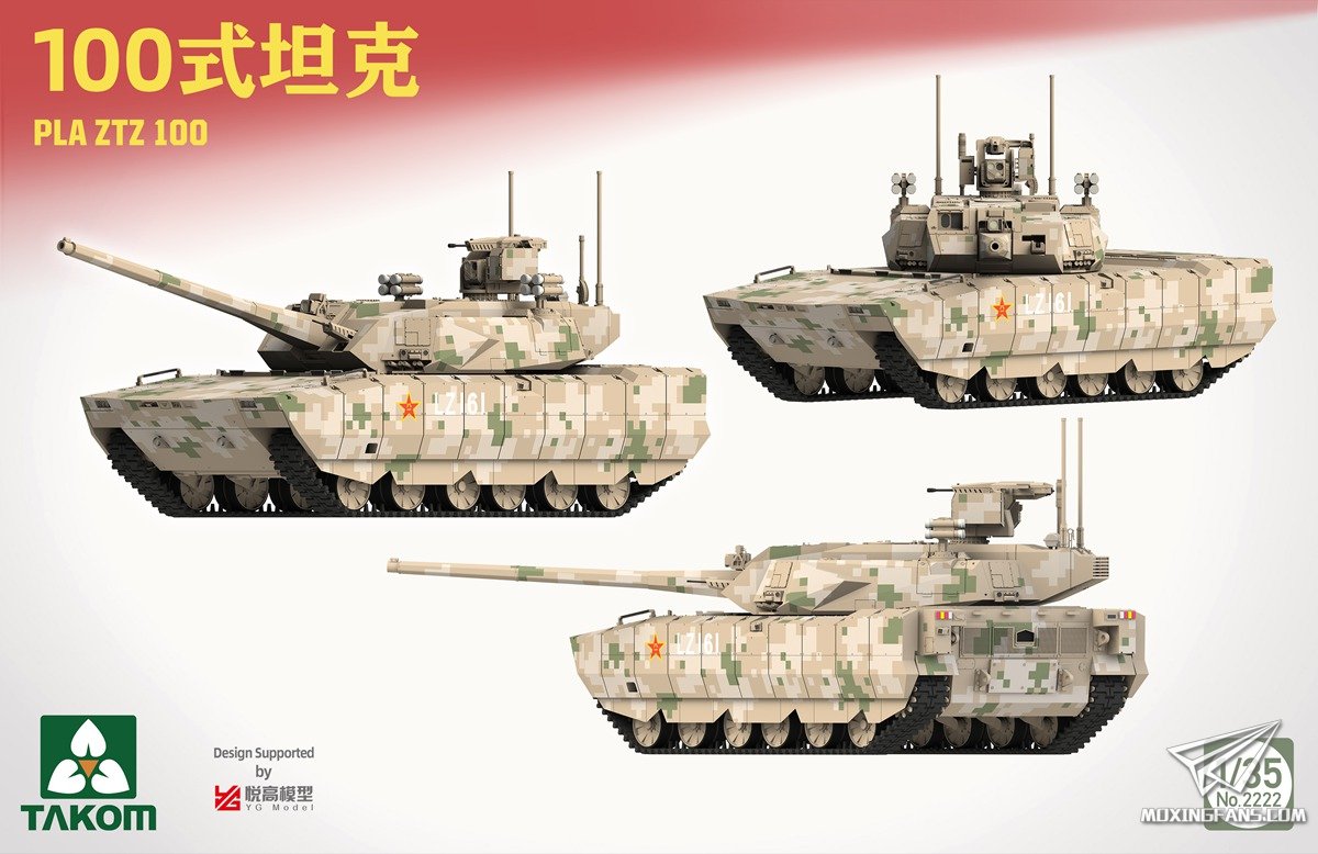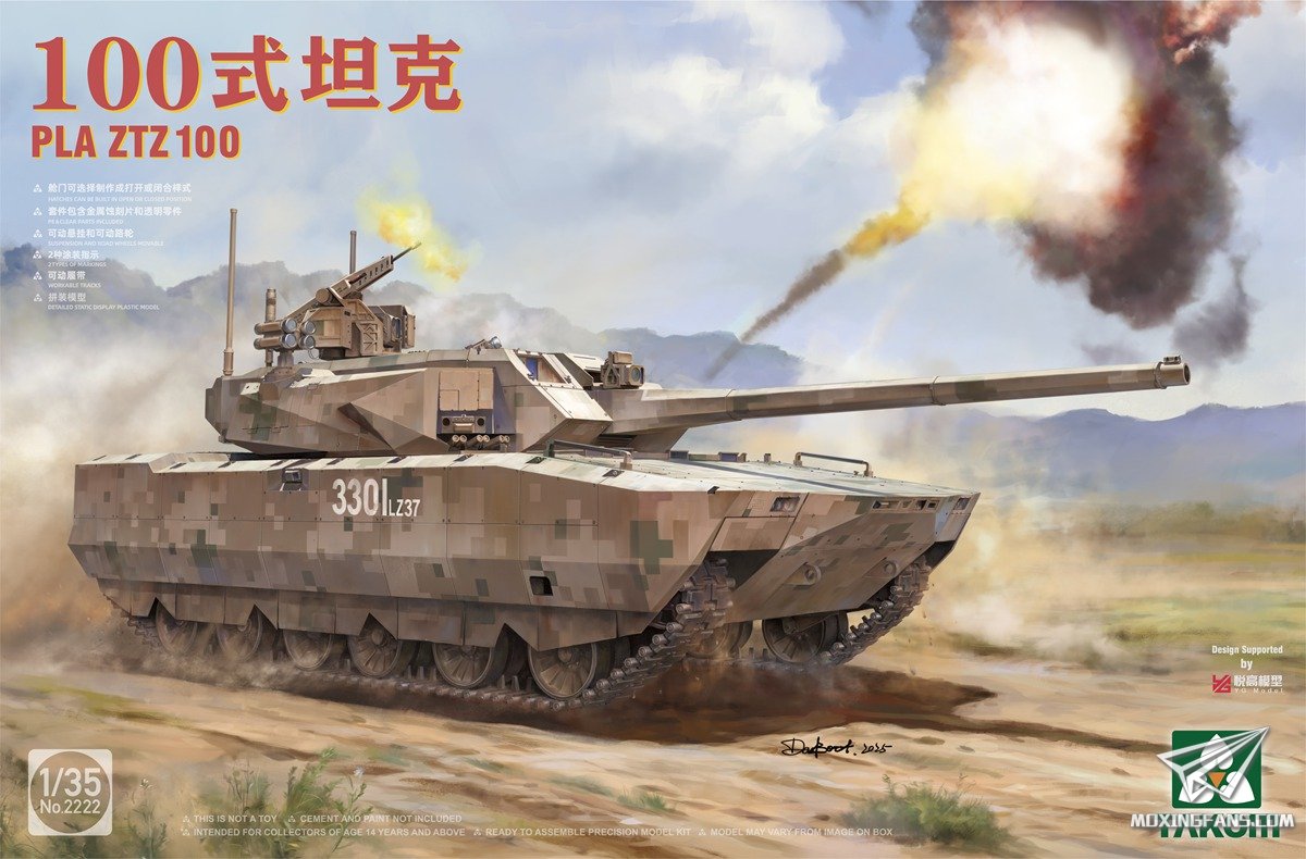 2222:1/35 ZTZ-100主战坦克 舱门可制作成打开或关闭状态;附带蚀刻片和透明件;可动悬挂;可动路轮;可动履带;2款涂装可选。