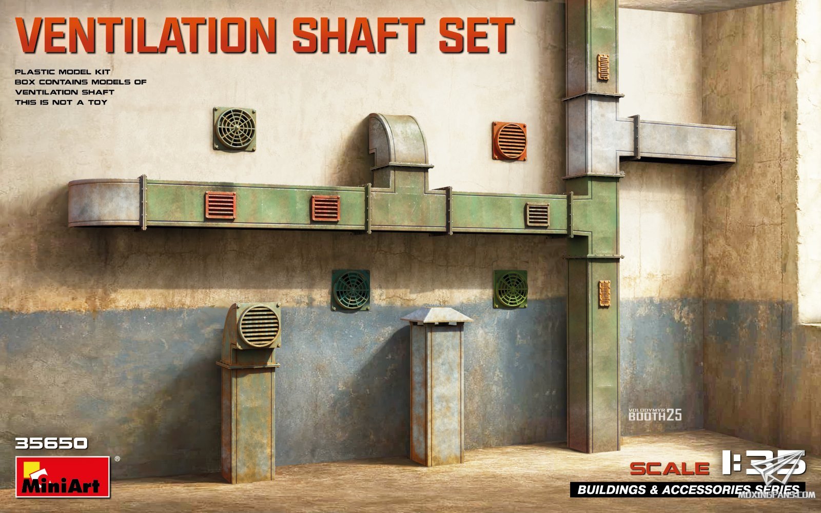 MINIART预告了一款新品:1/35比例的通风管道组。套件中包含多款通风管,可用于城市、工业和掩体等场景。