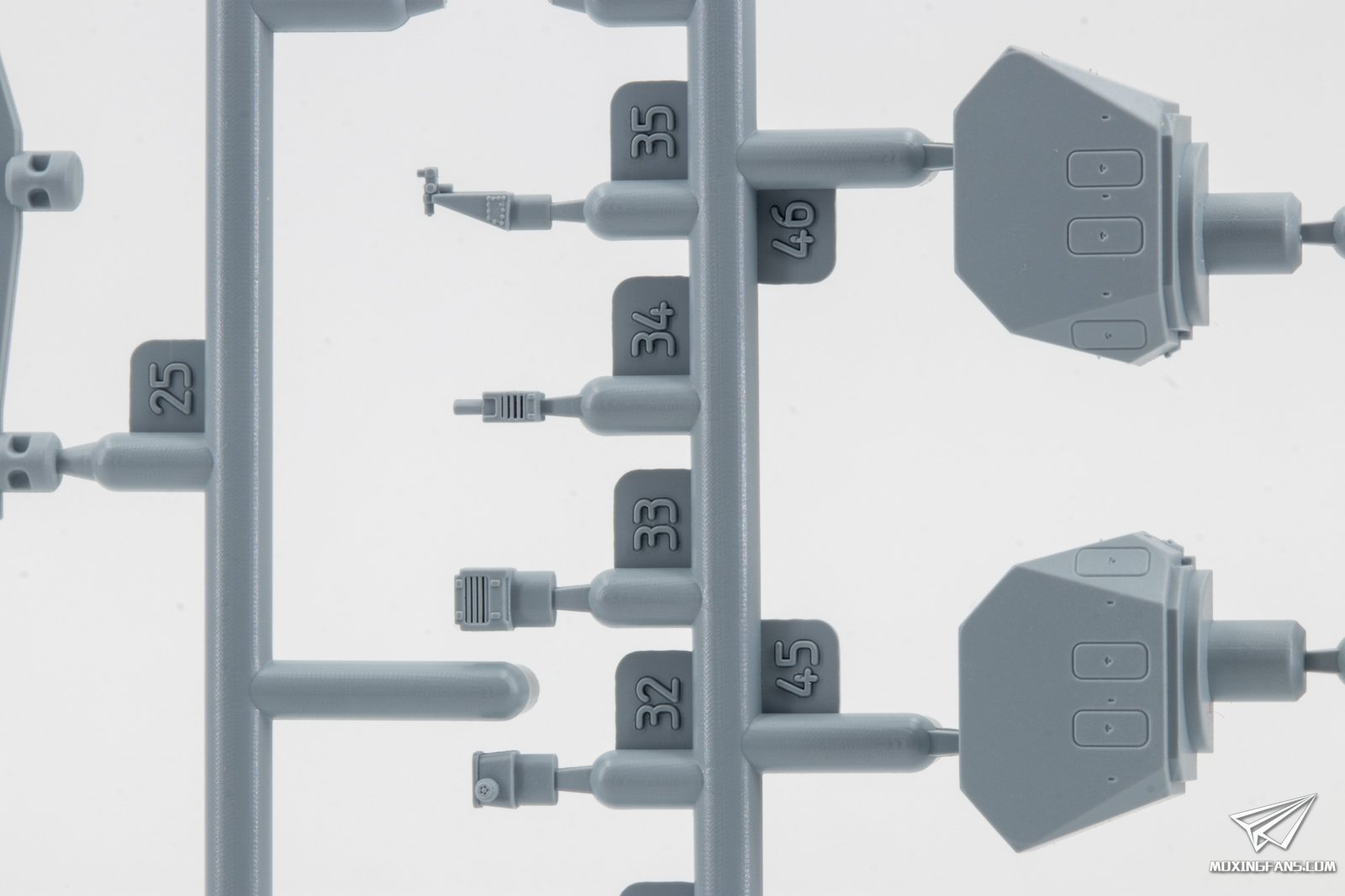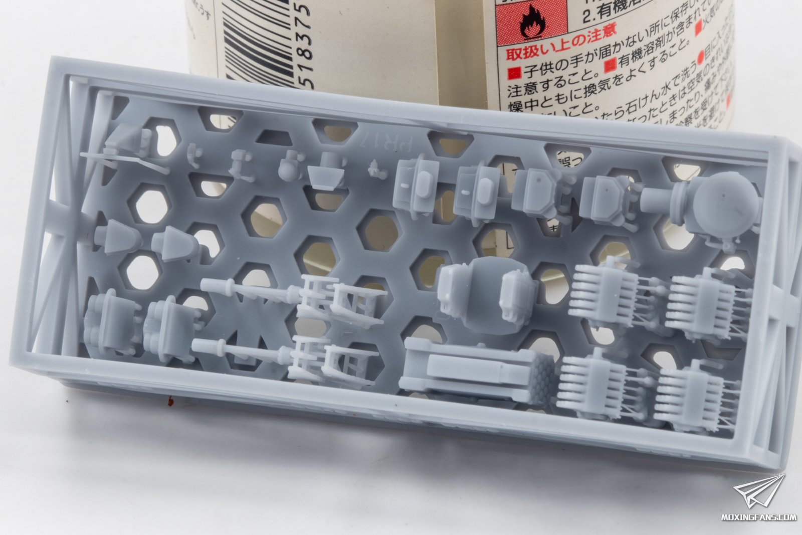 ▼ 3D打印零件的细节,包括主炮塔、直升机,雷达和烟囱等,十分丰富。