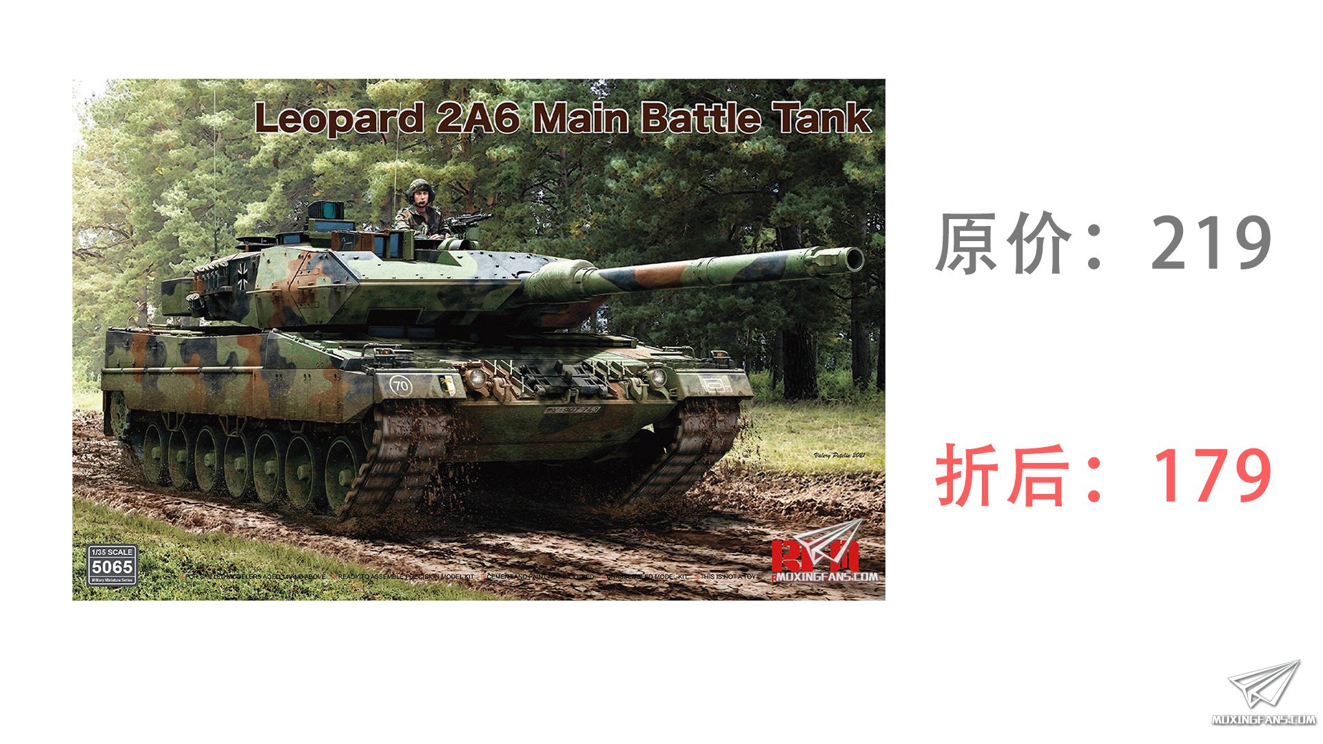 然后是空壳版的豹2A6。这款套件不好卖也是情理之中的事情,因为35比例的豹2A6是个绝对的红海题材,田宫,MENG,边境,小号手都有对应的产品,而且各有特色。麦田的这款豹2A6是2021年上市的,在市面上的主要竞争对手就是边境。麦田的开模相对于边境要碎一些,水口不少,小零件更多,一体化程度不高,整体的细节表现跟边境大差不差,附带蚀刻片和活动履带,当年219的官价性价基本是市面上定价最高的产品,现在特价179元。