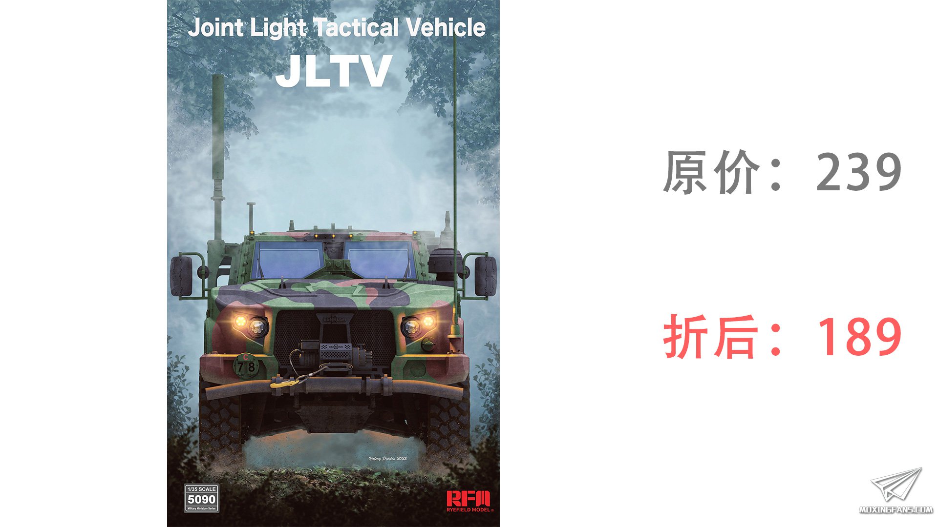 JLTV联合轻型战术车。这辆车人气还挺高的,2022年上市,当时发布的时候跟SABRE的同款模型撞车,后者凭借更丰富的配置和更亲民的价格在销量上碾压了麦田的同款。但是如果单论细节的话,麦田的这款套件可以说是里程碑式的产品,在这个题材上完全没有对手,细节的丰富程度远超之前推出的产品,附带基础蚀刻片。但是这款产品也不完美,第一个缺点是开模比较细碎,对素组有一定要求;第二个缺点就是作为一款轮式车辆模型,这盒套件并没有附带发动机内构,多少有些遗憾。这盒套件的官价是239元,这个价格明显过于自信了,现在特价后的价格是189元。