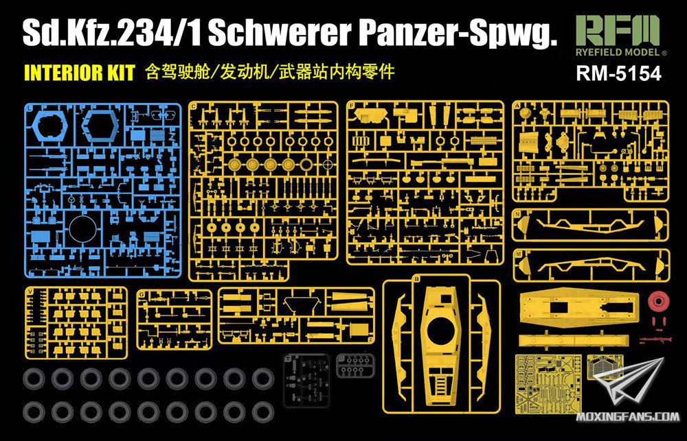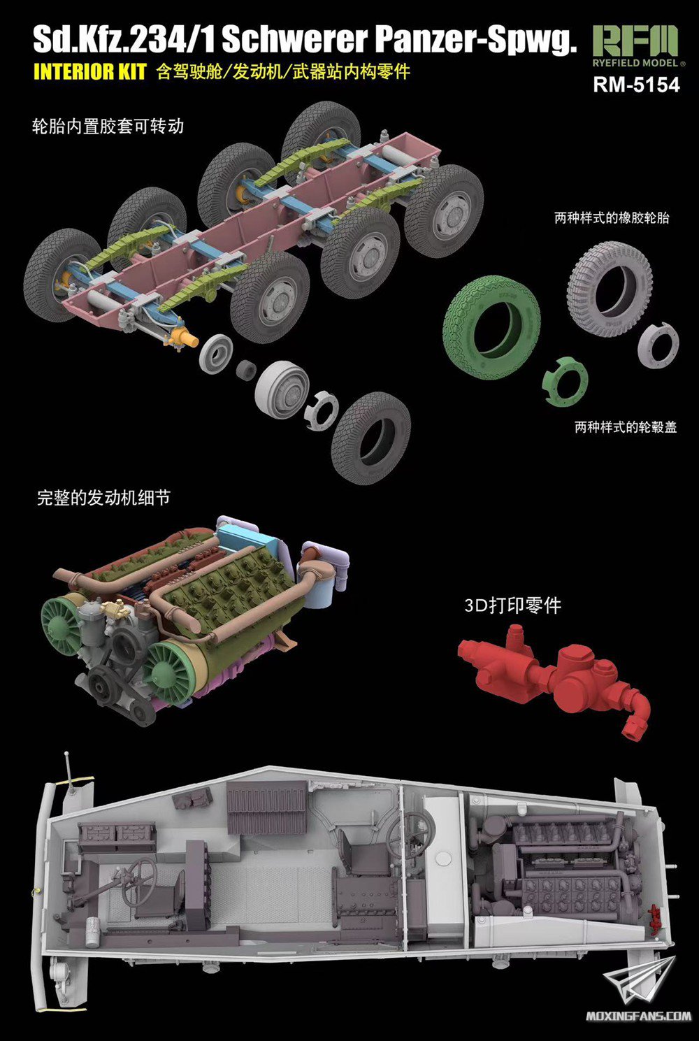 最后一款新品是234/1大八轮。麦田推出这个型号也是情理之中了,虽然不如234/2 puma和234/4长75的人气高,但是模具还是要充分利用的。从介绍来看,这款大八轮附带蚀刻片,3D打印零件和软胶轮胎,附带战斗室和发动机舱的内构,内构的丰富程度介于威龙和MINIART之间,官价是229元。 ![]() ![]() ![]() ![]() ![]()