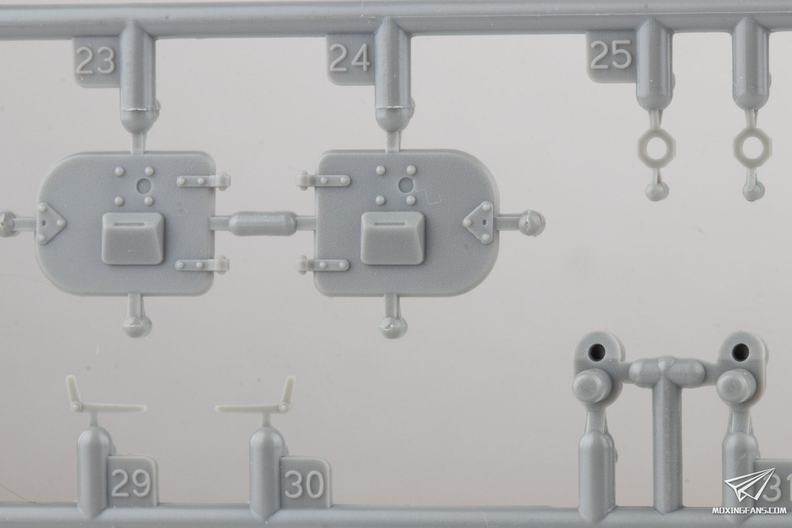 ▼ 炮塔主体为一体式开模,舱门顶部的雨沿单独开模,起重机牵引勾的吊钩部分为单独开模。