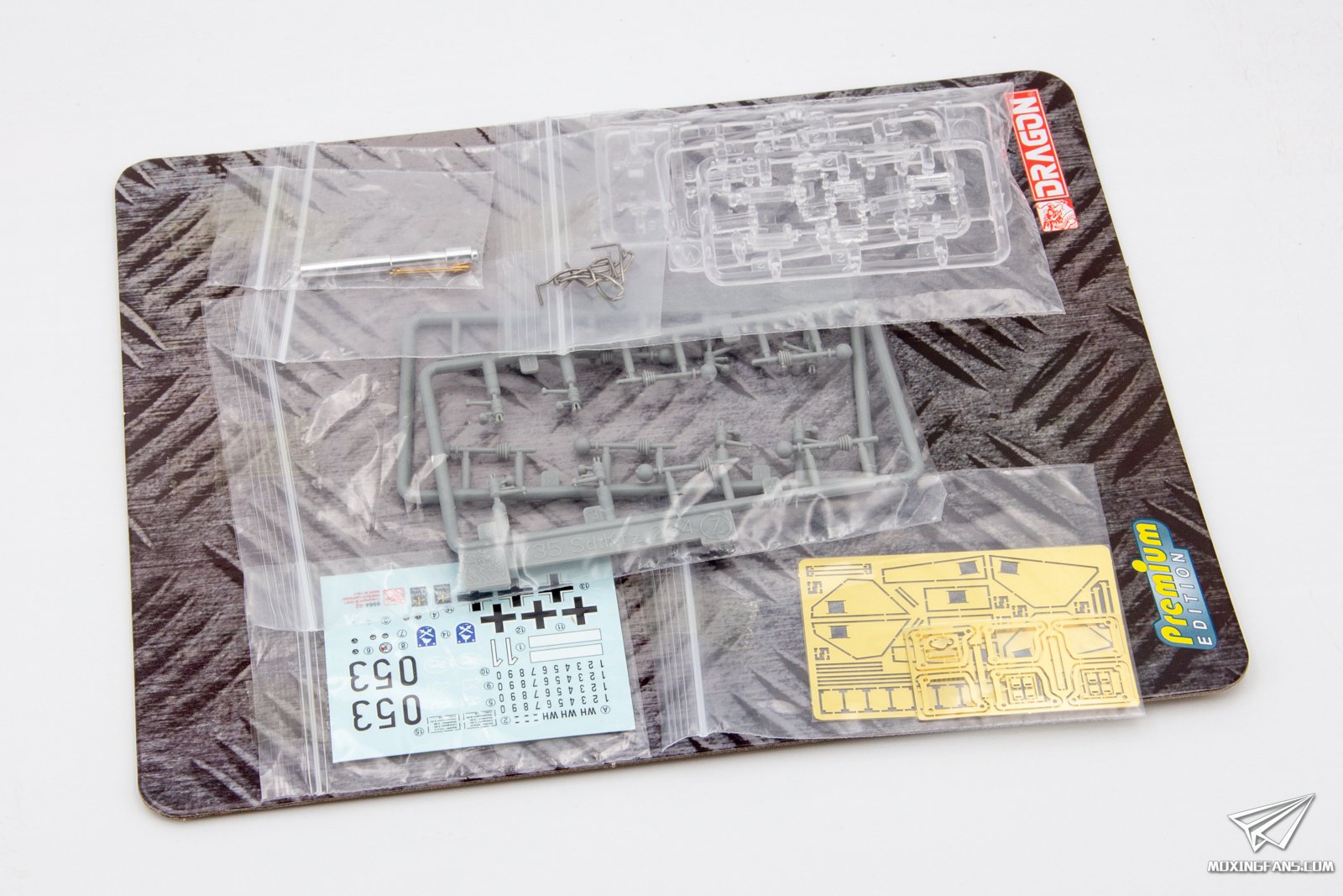 ▼ 威龙今年再版了这款234/3烟头炮的8轮装甲车,相对于上次在配置方面进行了升级,黑卡重新回归,增加了铝合金炮管,金属示宽棒和一组人形,其余的2张蚀刻片,2种射出件轮胎等配置得到了保留。
