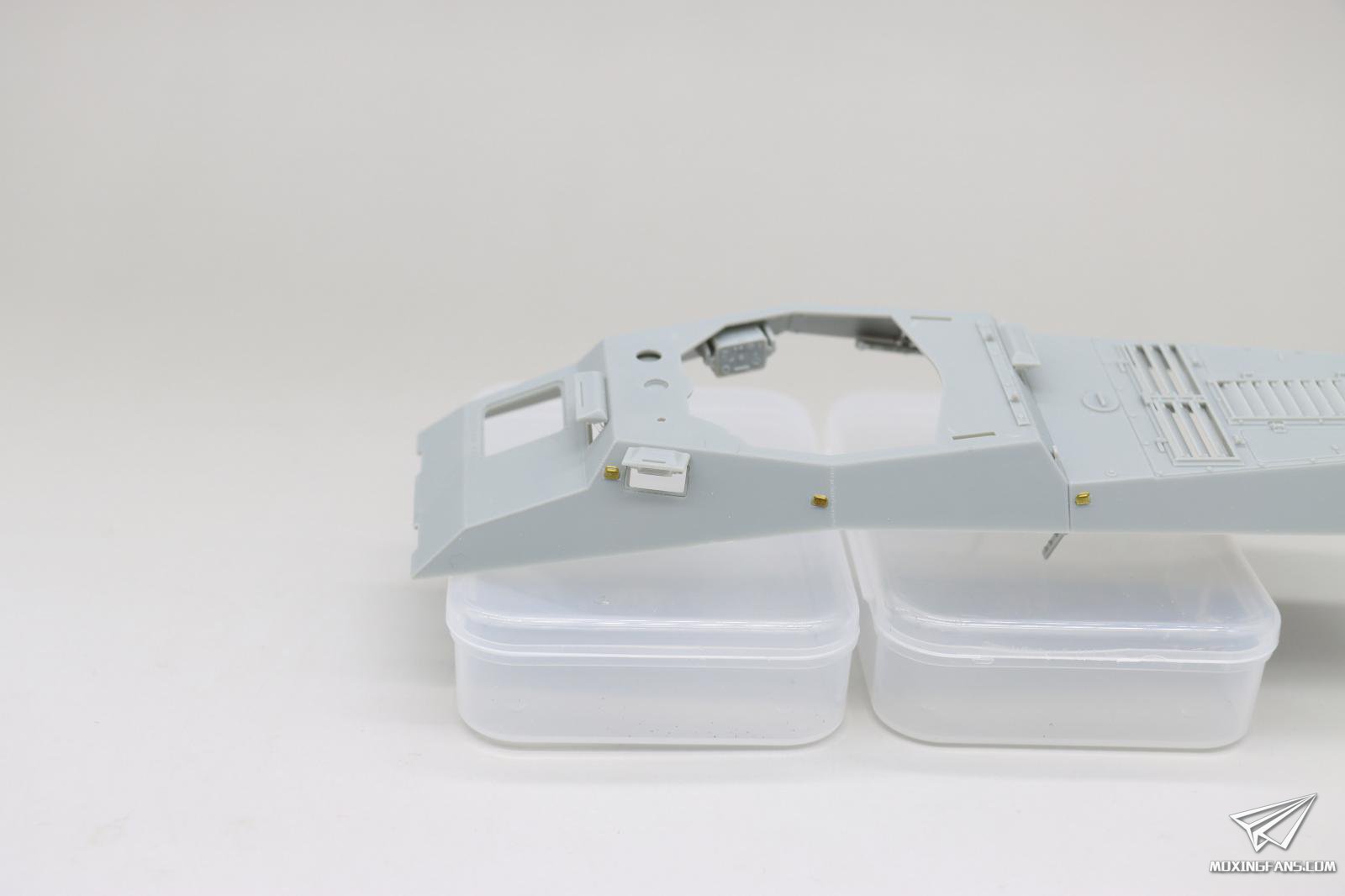 接下来是上下车体预装 主要观察窗子都是活动的不要粘死,储物箱上的蚀刻片难度不大,耐心慢慢做就好。 金属蚀刻片难度不大,细心,手慢即可保证效果。