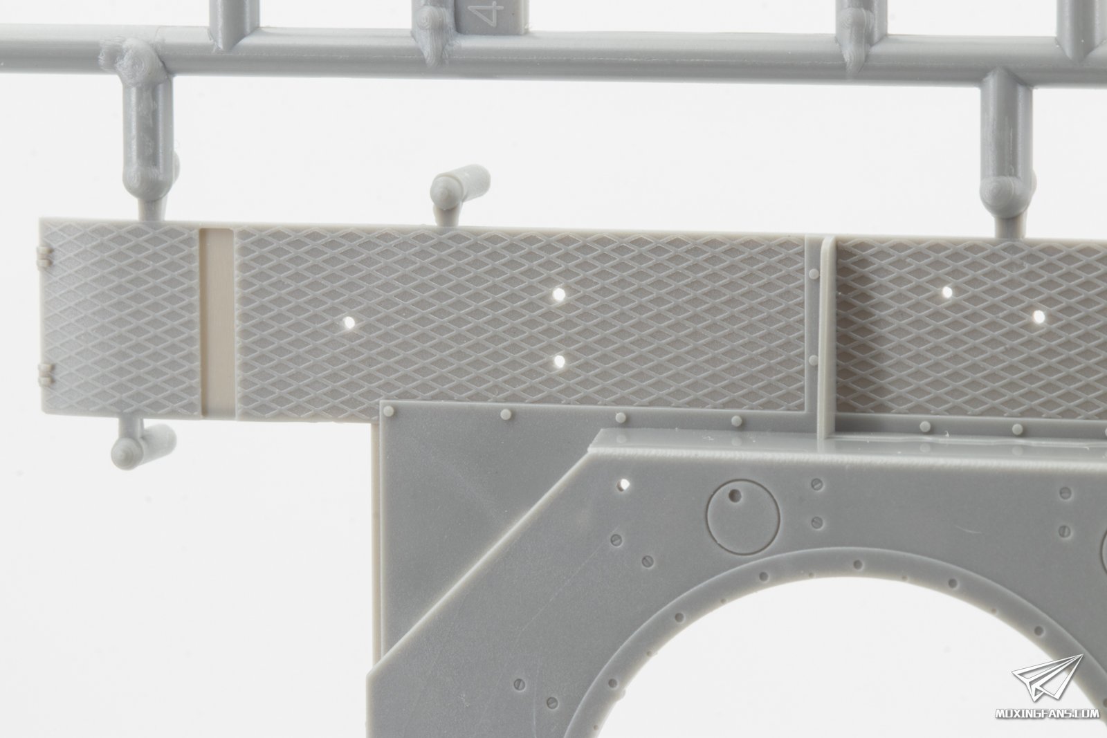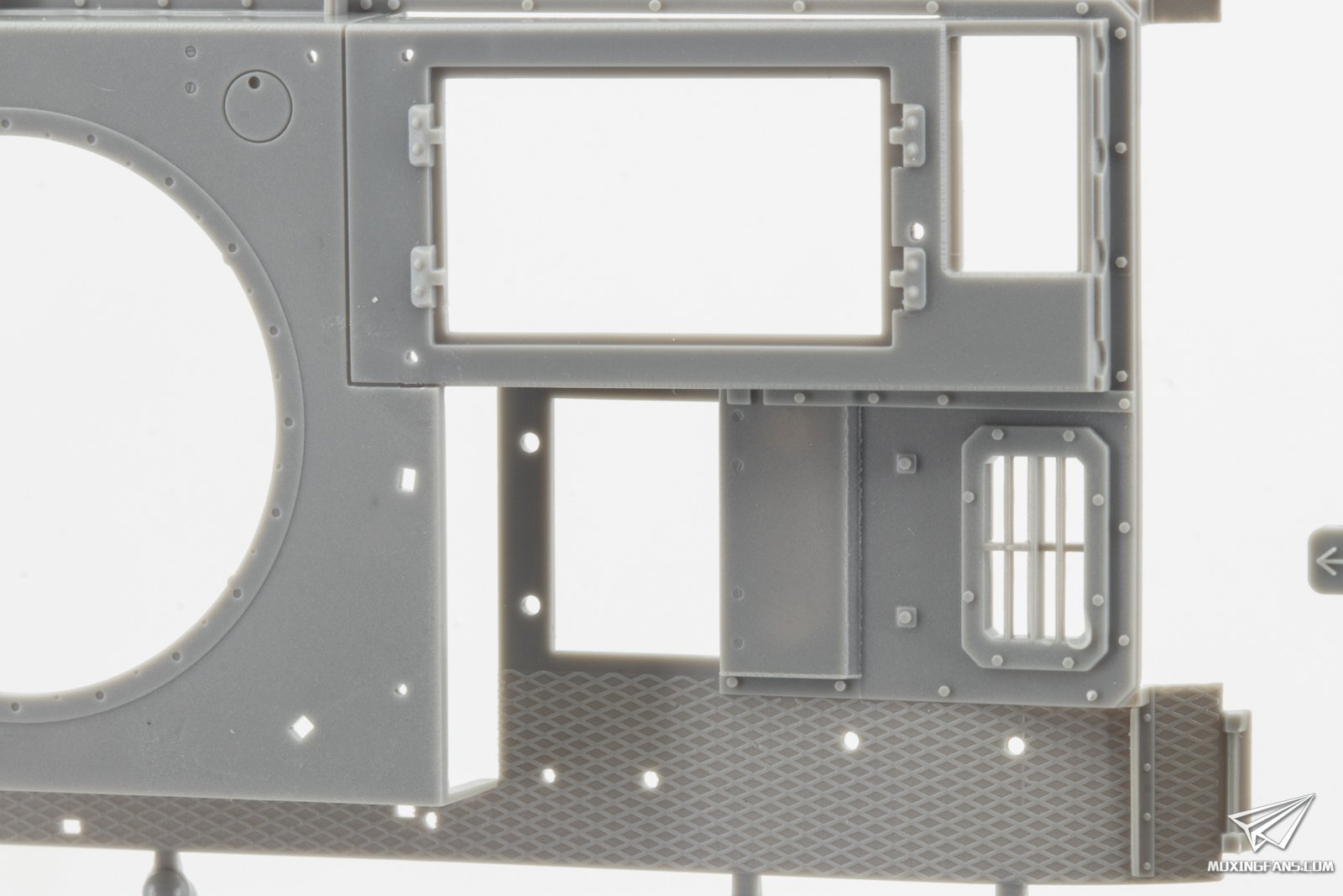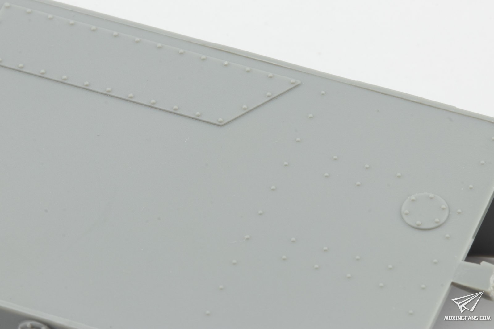 ▼ 上车体主体为一体式开模,焊线较为丰富,还开出了一些一字埋头螺栓的细节。