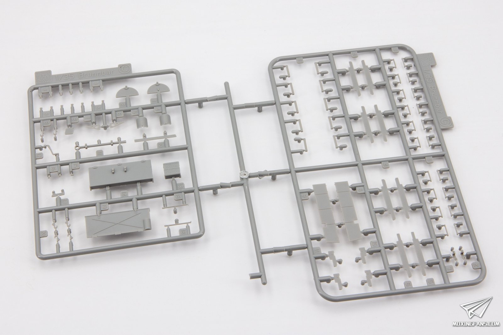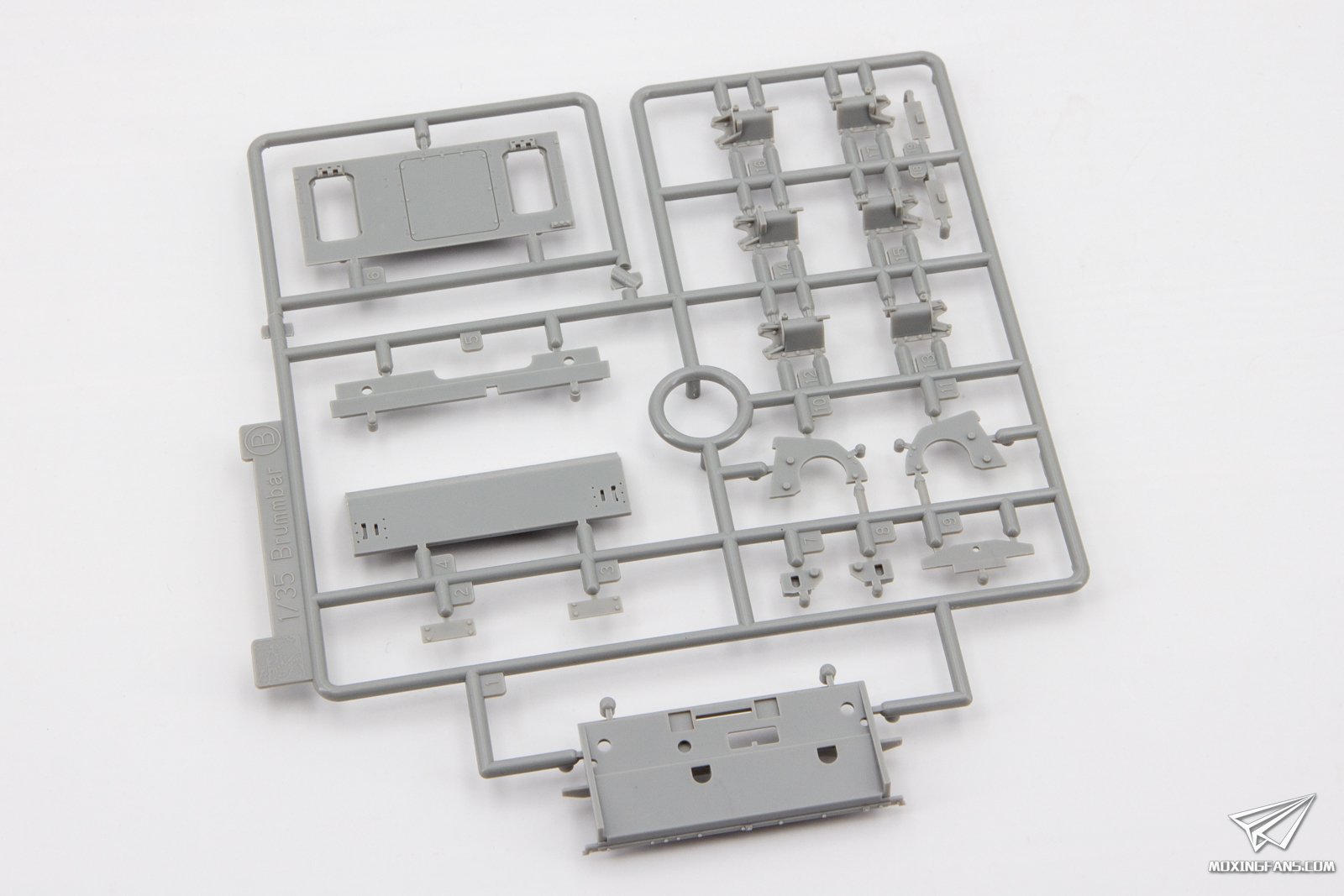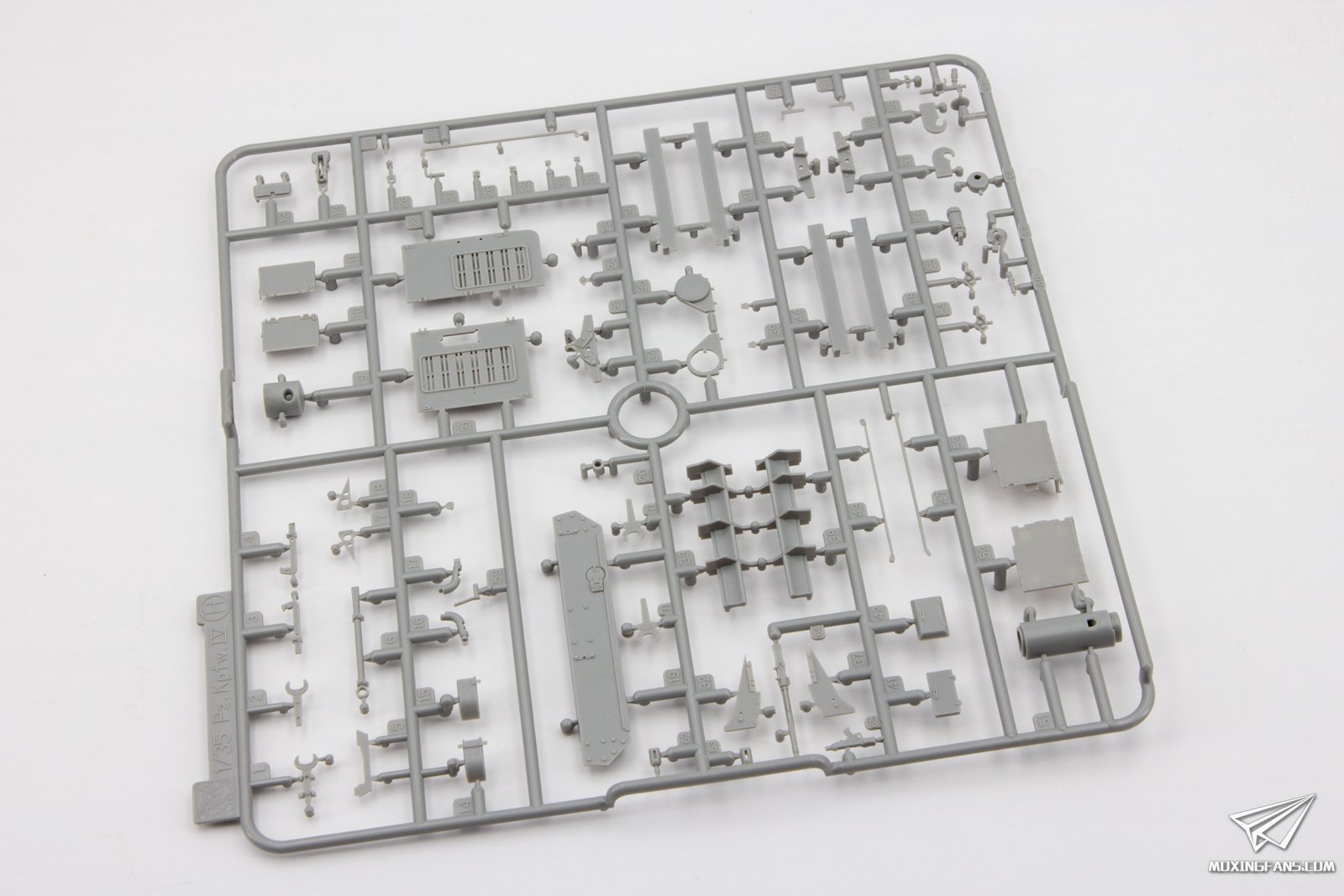 威龙近期再版了两款防磁灰熊,勾起了不少模友的兴趣,今天我们就来看这款中期型的防磁灰熊表现如何。 ▼ 板件为灰色PS塑料,黑卡重新回归,附带魔术履带,蚀刻片,金属侧裙板,铝合金炮管和一组人形。