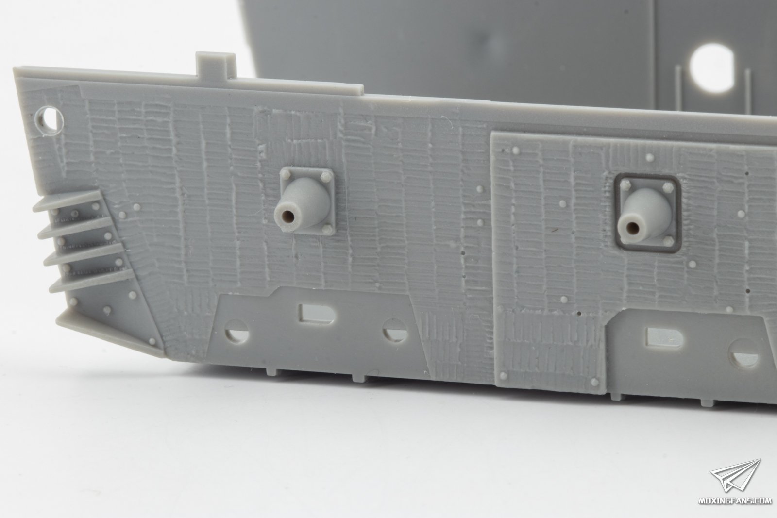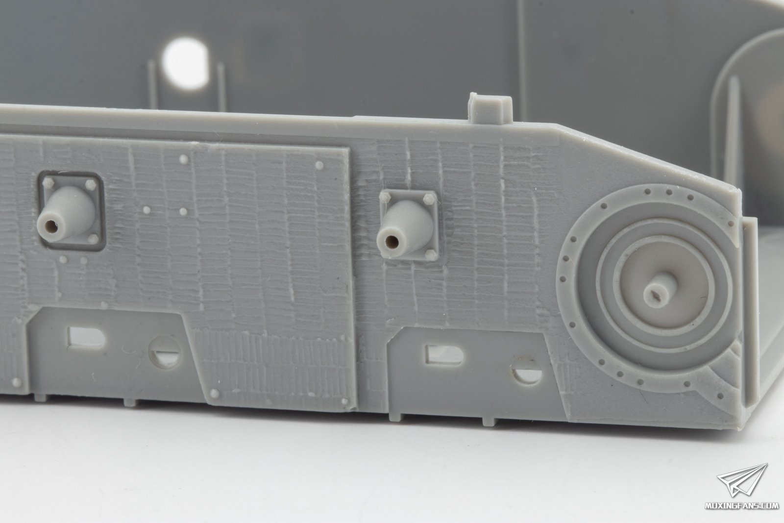 ▼ 防磁部分零件的细节,跟之前发布的中期型主要区别在于下车体采用了带有附加装甲的型号,战斗室前部驾驶室观察窗和虎式坦克类似,其余部分基本相同,防磁水平也表现一致,厚度较薄,也很逼真。