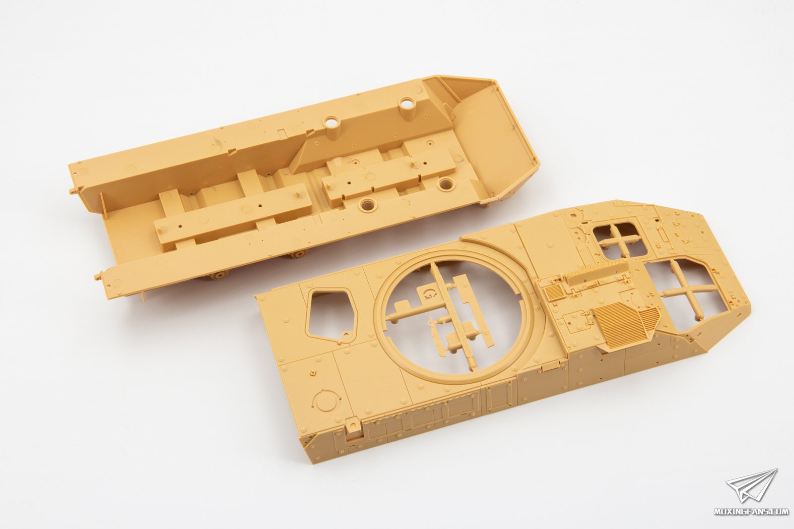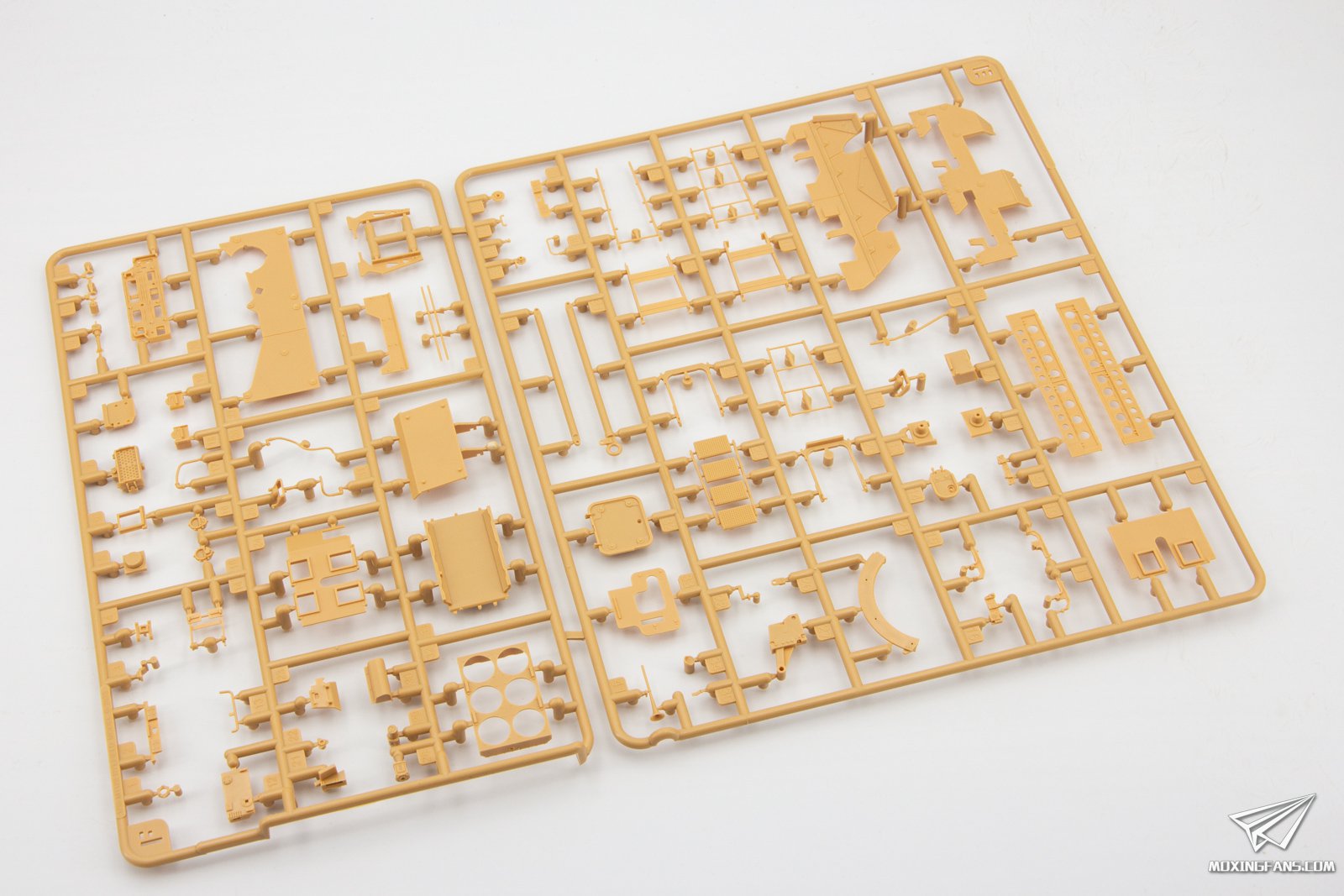 今年8月份麦田预告了这款M1128斯崔克机动火炮系统,凭借火爆的题材迅速成为了模友们期待的一款套件,今天咱们就一起来看一下这盒套件表现如何。 ▼ 板件为黄色PS塑料,采用活动悬挂设计,附带蚀刻片,软胶轮胎和3D打印炮管。