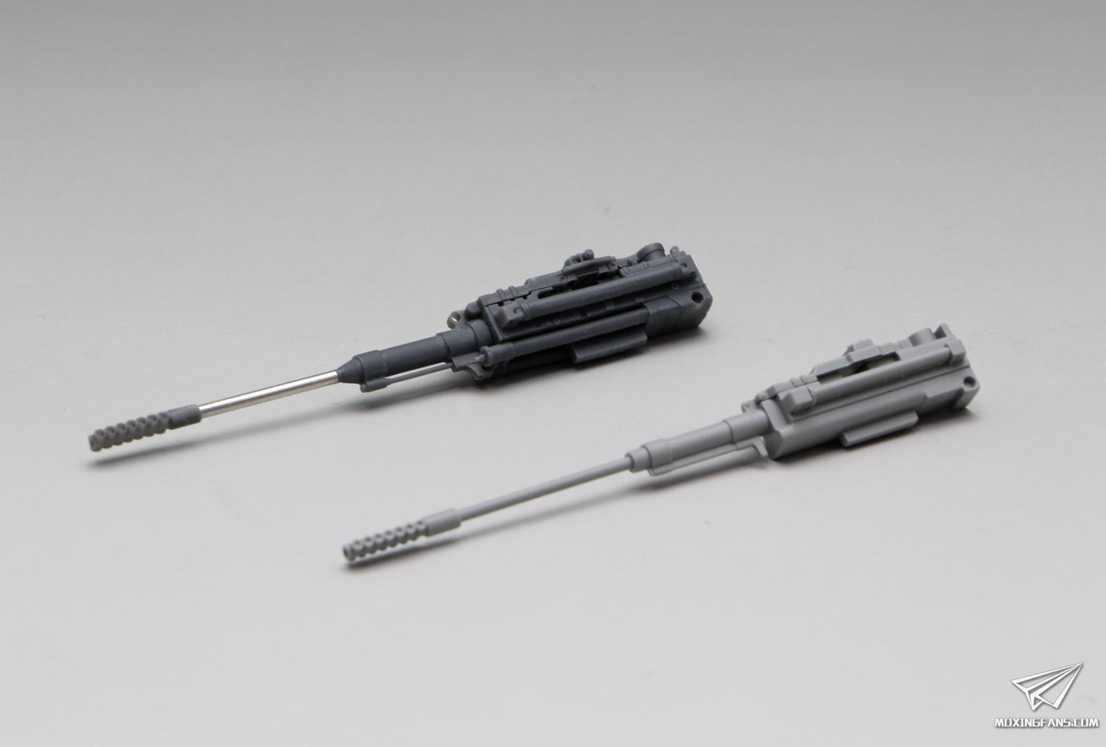 素组过程中使用了新晋品牌RC的3D打印机炮和轮组,零件组成非常简单,制退器炮口,金属炮管、机炮主体和上盖,可以看到在细节方面,3D打印件完全碾压了原装件。原装机炮的炮口制退器只开出了炮口,3D打印件的炮口制退器不仅炮口开出,还开出了消焰口,这几乎是真炮的结构了;再如原装机炮机盖打开后毫无细节,3D打印件可以完整的看到上盖内部的细节;炮身和炮管制退液压杆部分细节更加犀利,这可能就是3D打印件的意义吧——细节犀利+正确的考证。 材质上来说略脆,不过支撑点很小,可以徒手把零件掰下来,所以韧性还是有的。心细的模友可以用剪钳剪断支持点再掰,防止崩口。炮口制退器安装在金属炮管上需要略略扩下孔,以便顺利安装。