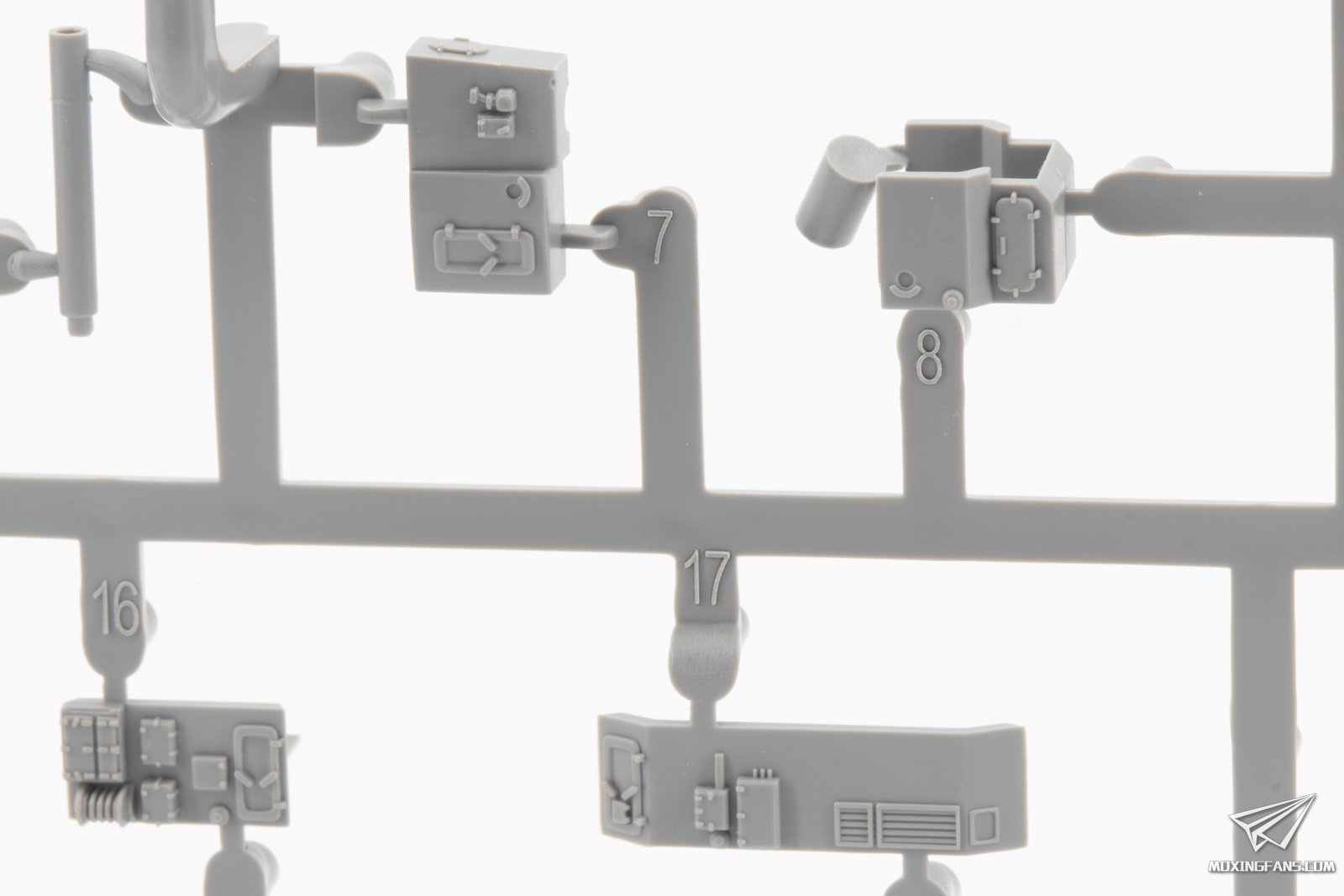 ▼ 烟囱和上层建筑部分,这部分零件都是传统的多片式开模,需要大量的无缝处理,比较繁琐。
