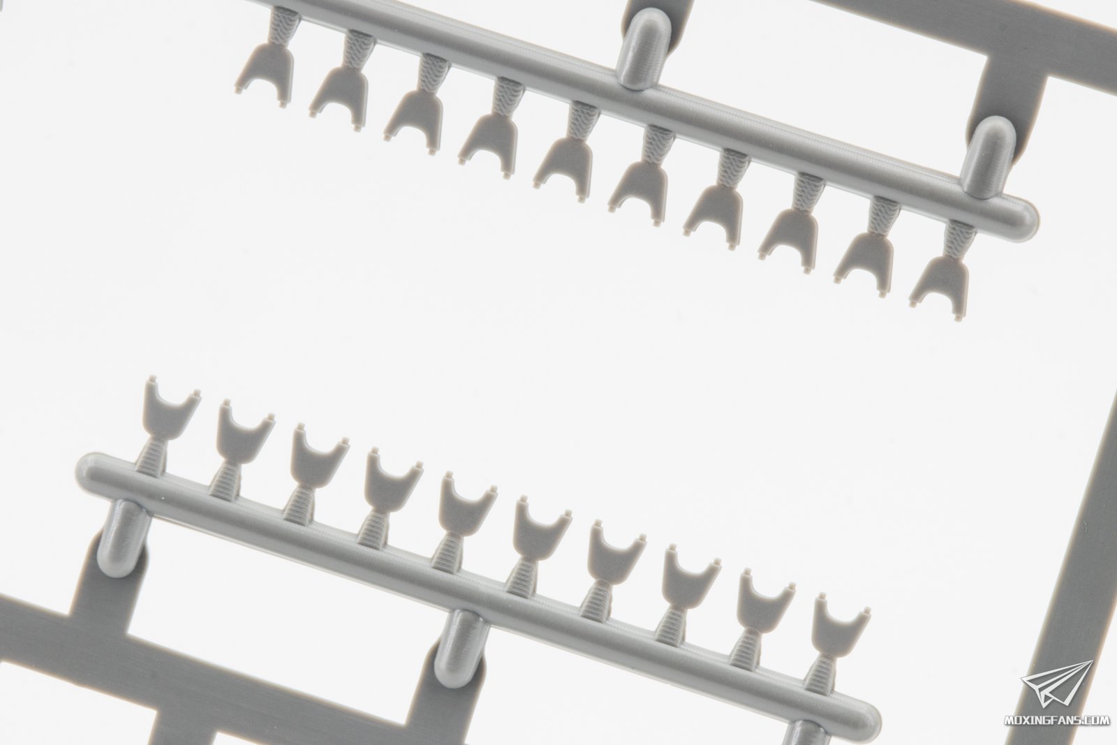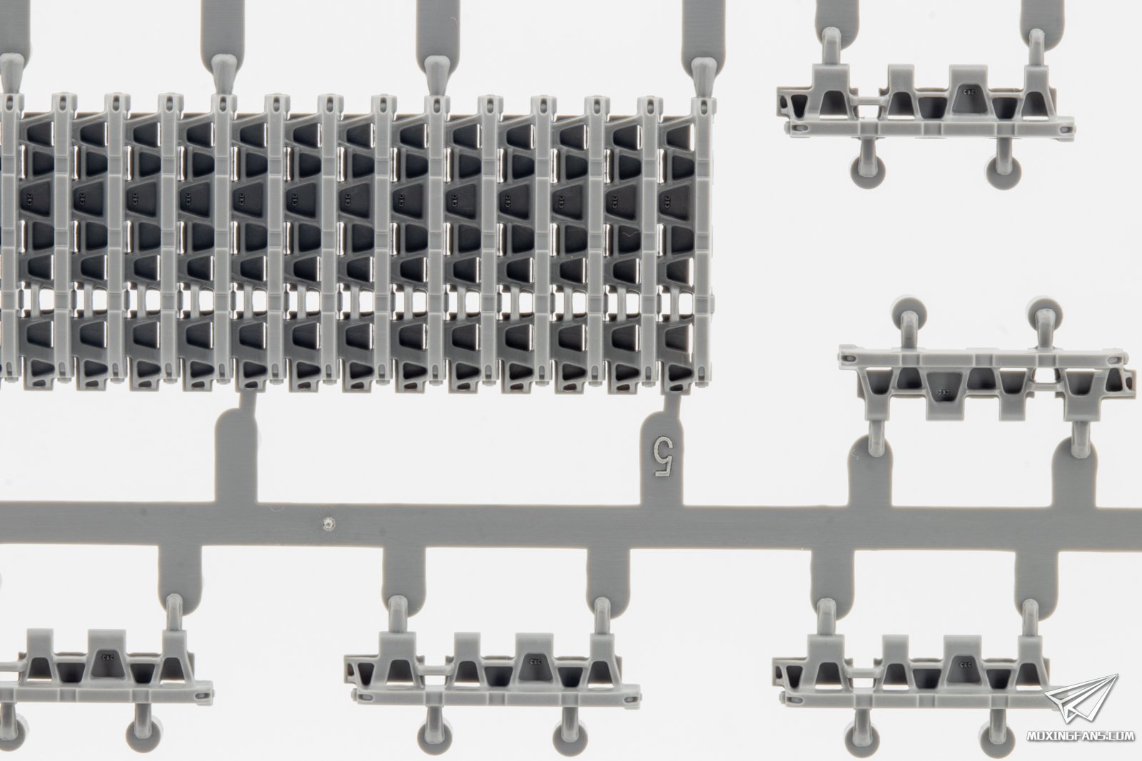 ▼ 履带方面依旧是那套半拼接,这次除了量产的左侧履带以外还提供了右侧的履带,诱导齿同样为单独粘接,有较浅的推出孔。
