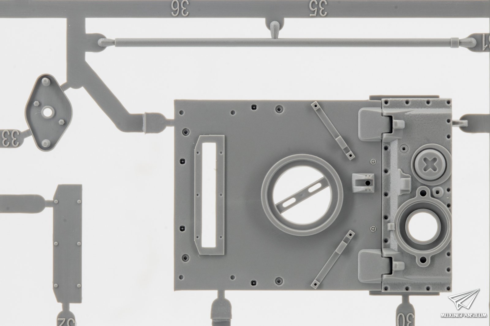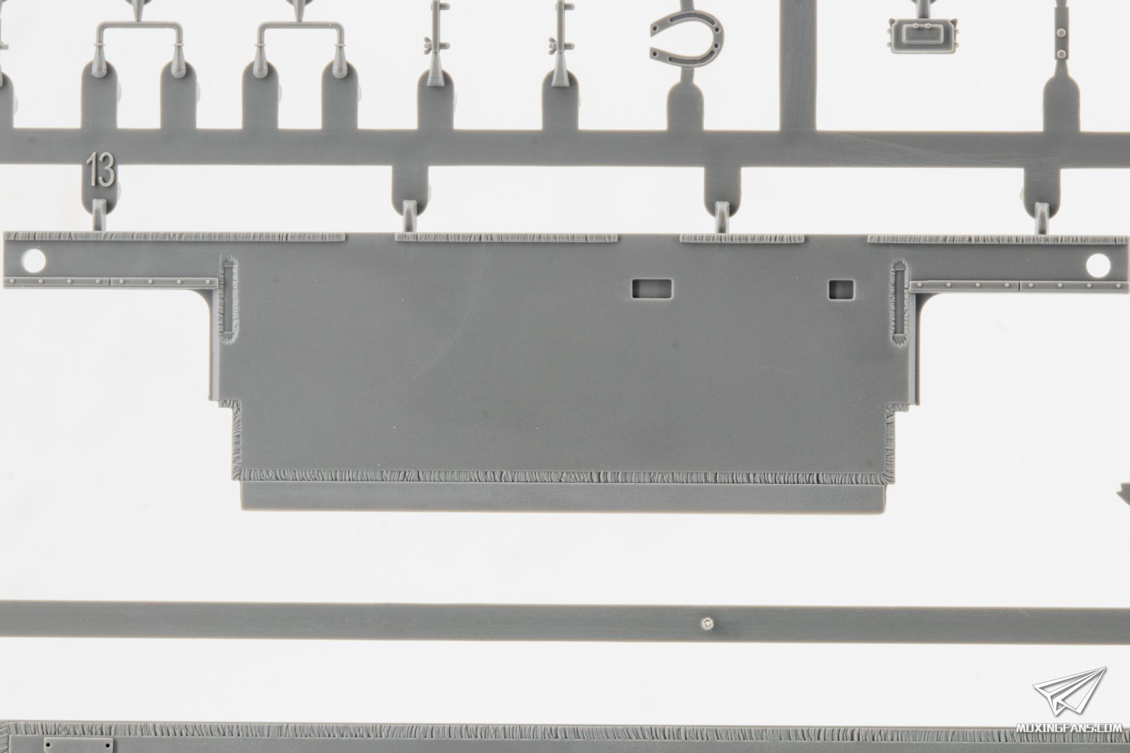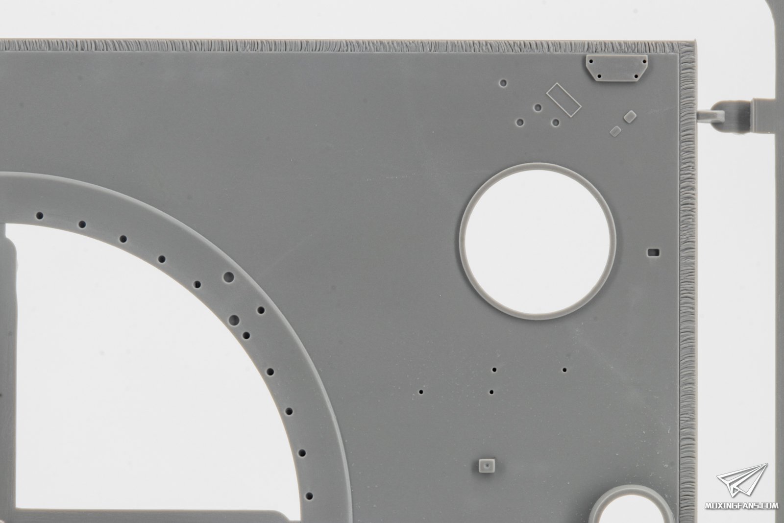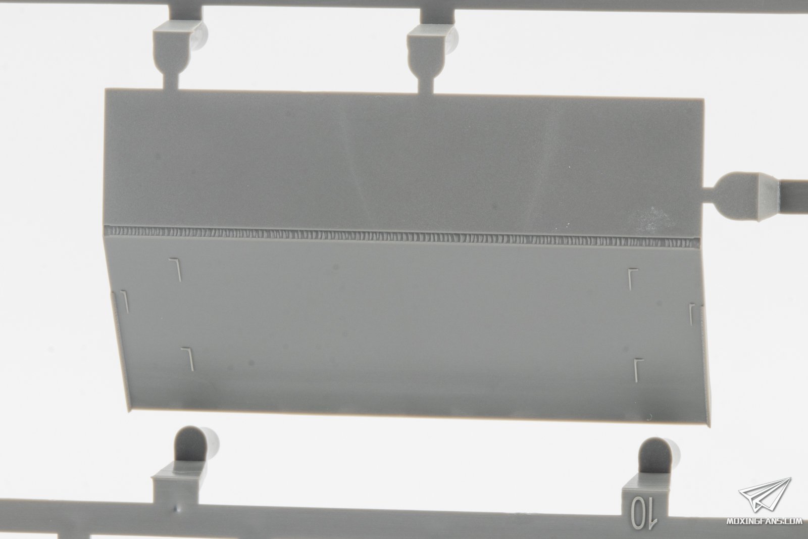 ▼ 上车体,发动机盖板,前挡泥板等零件均为新开模,焊线细腻,细节锐利,车尾装甲板沿用了之前的零件,需要进行一些填补。