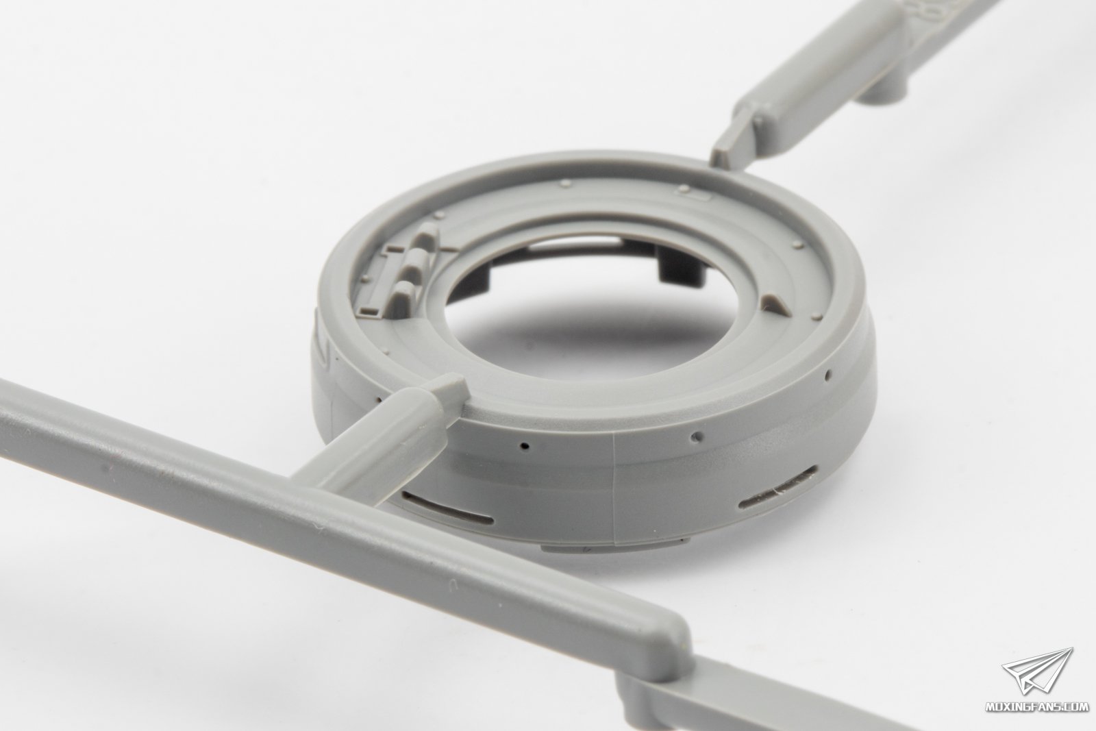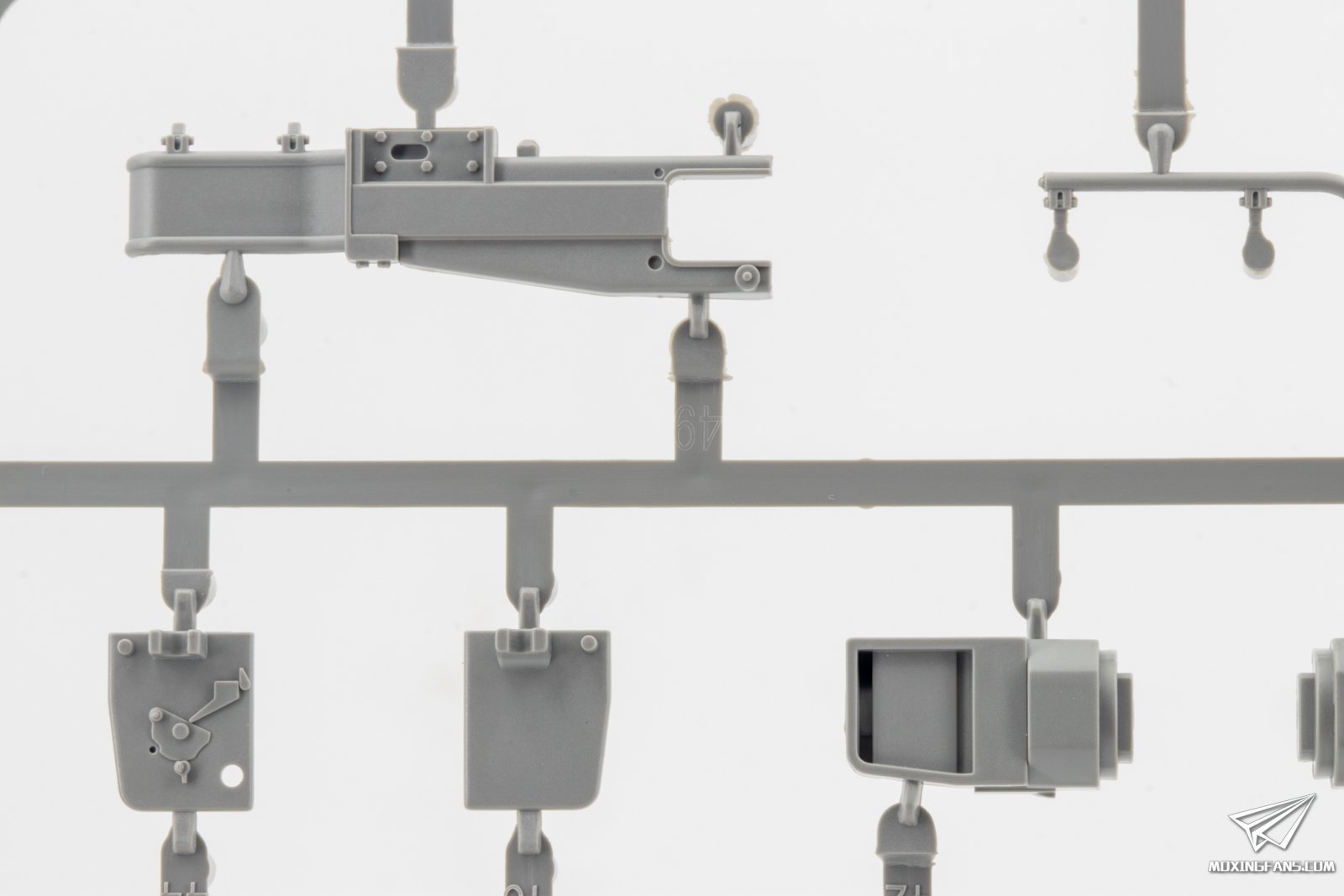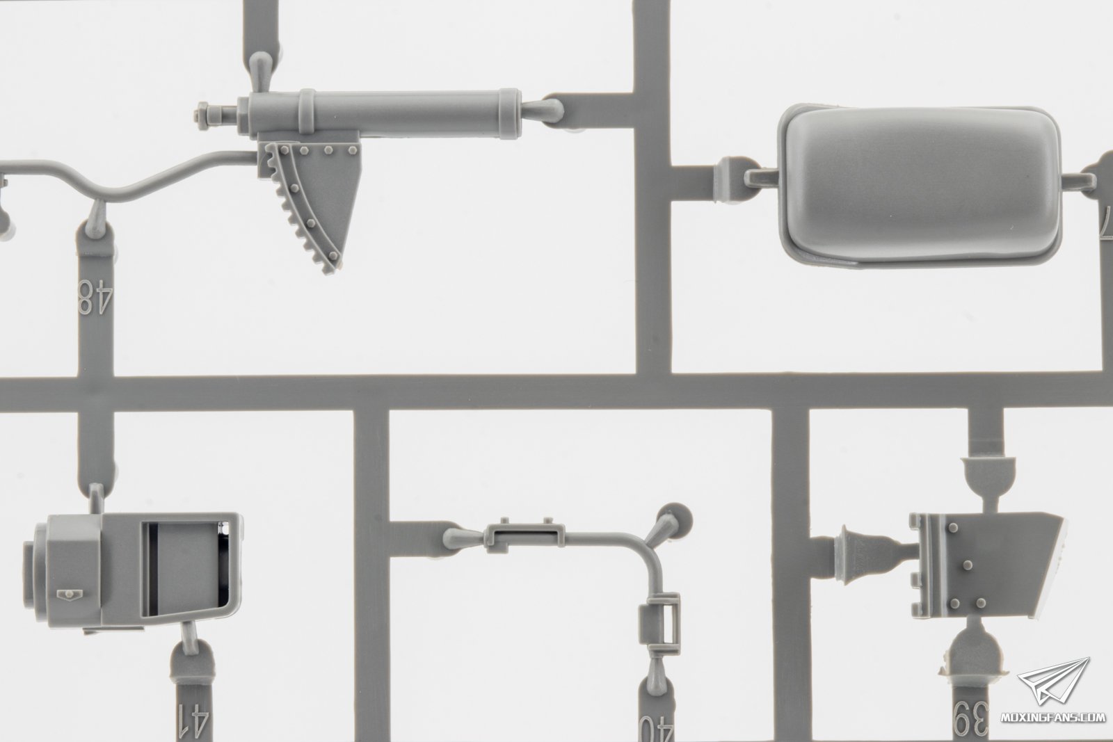 ▼ 指挥塔和火炮的细节。指挥塔采用一体式开出,侧面有合模线,火炮主体采用一体式开模。
