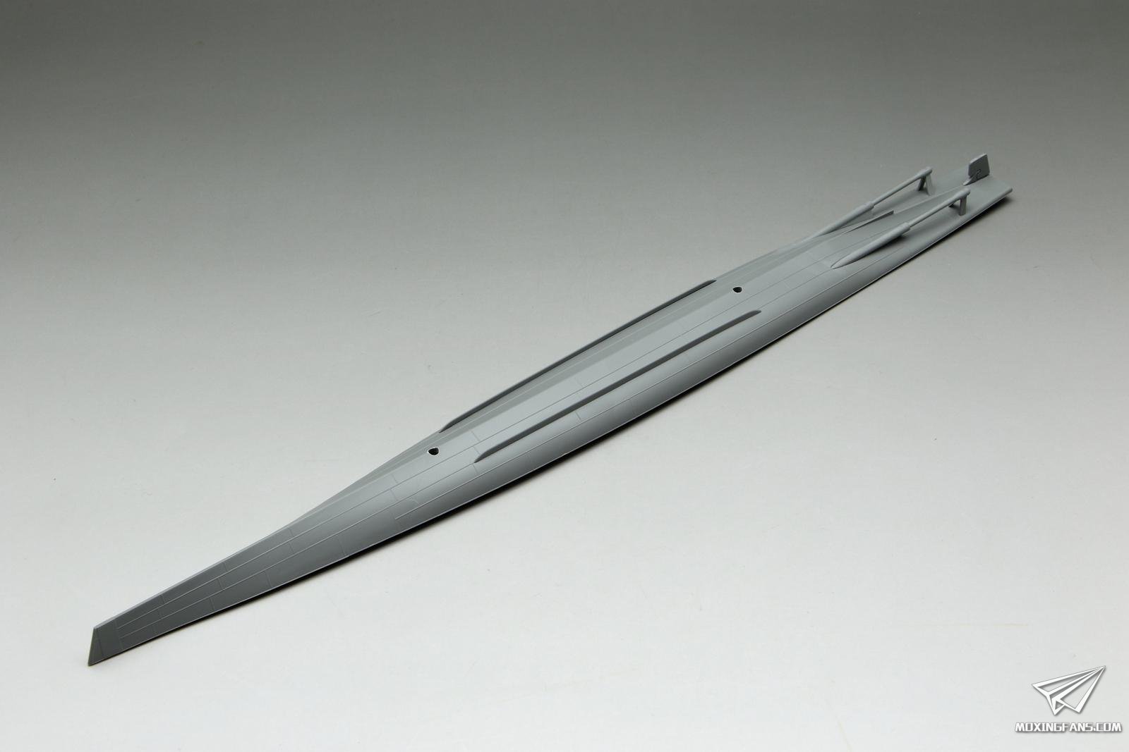 笔者先完成了舰体部分,水线下部分为一体开模,需要按照说明书提前打好孔位,上半部分为左右合体,舰首部分需要无缝处理。展示台打孔2.5毫米(说明书指示),其实有点空,会左右偏摆,2.2毫米应该就差不多了。