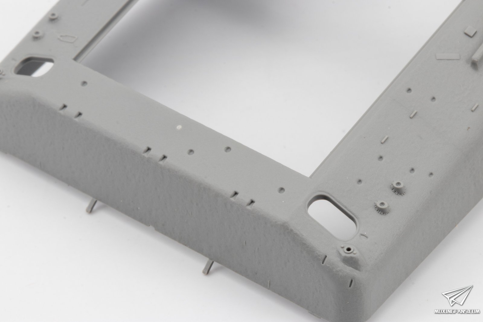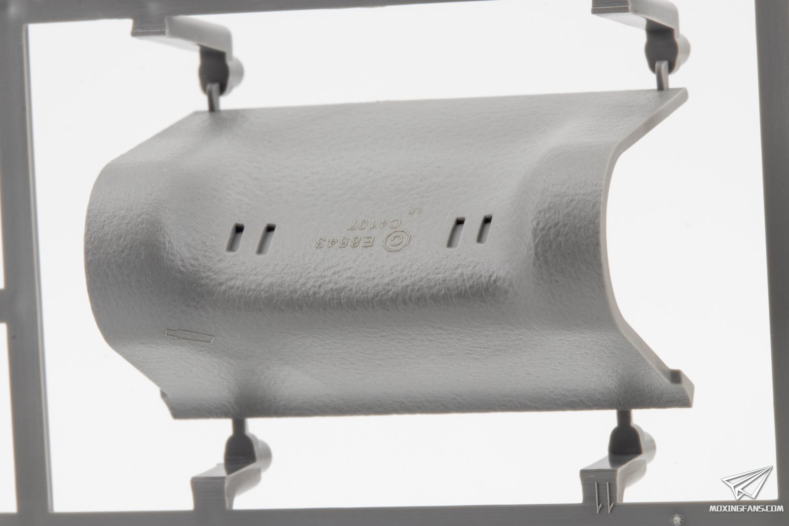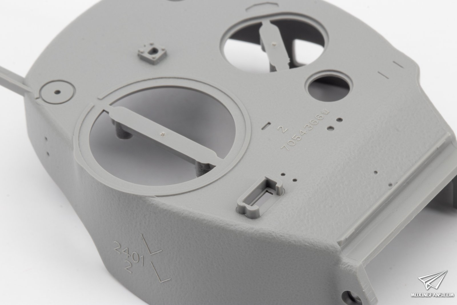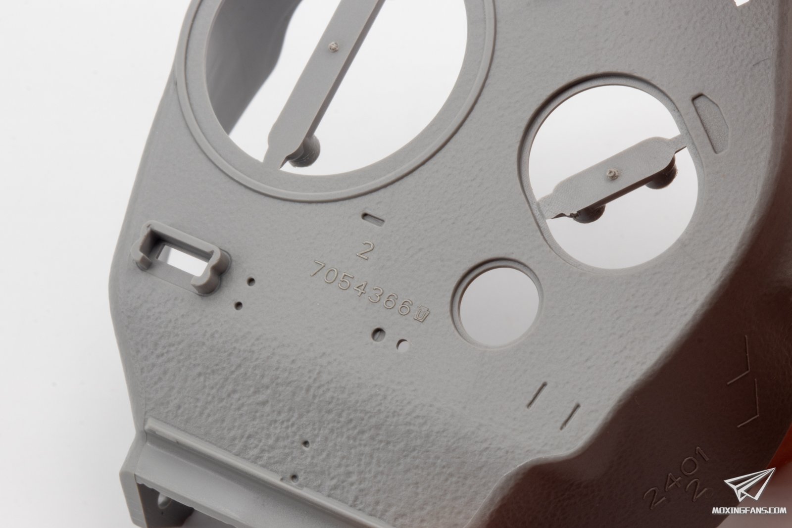 下车体,上车体和炮塔等零件都沿用了之前的板件,铸造感和铸造编号细节出色,车体侧面有一条较浅的合模线。