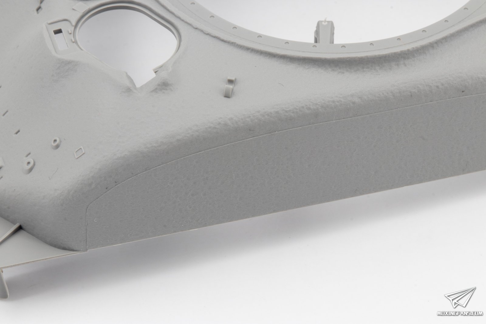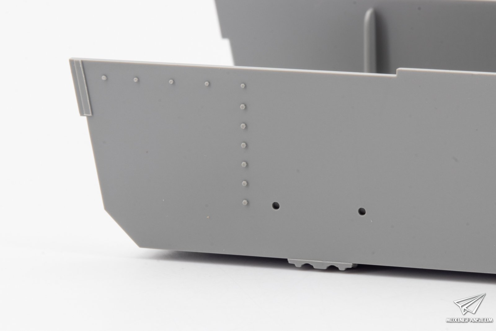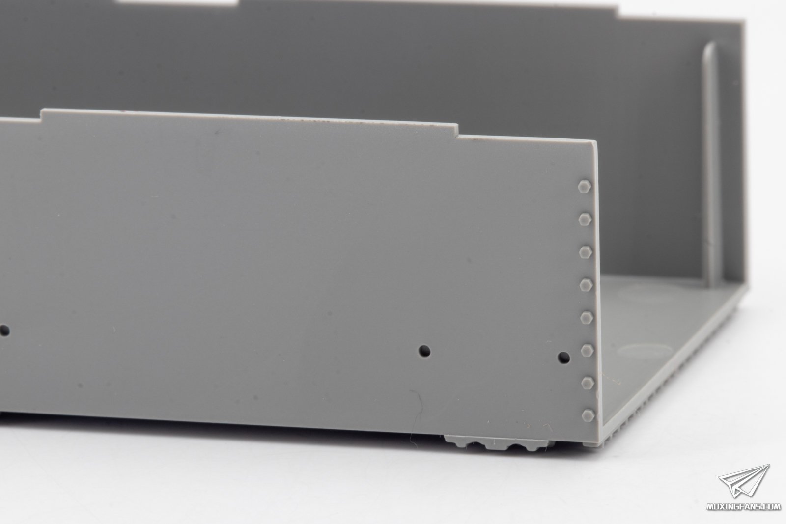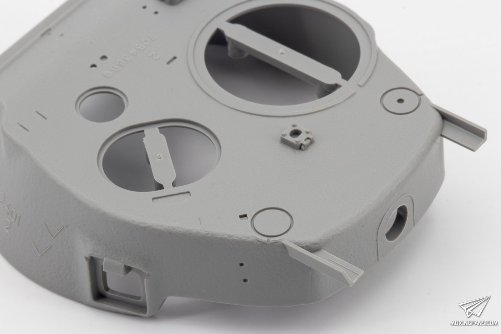 下车体,上车体和炮塔等零件都沿用了之前的板件,铸造感和铸造编号细节出色,车体侧面有一条较浅的合模线。