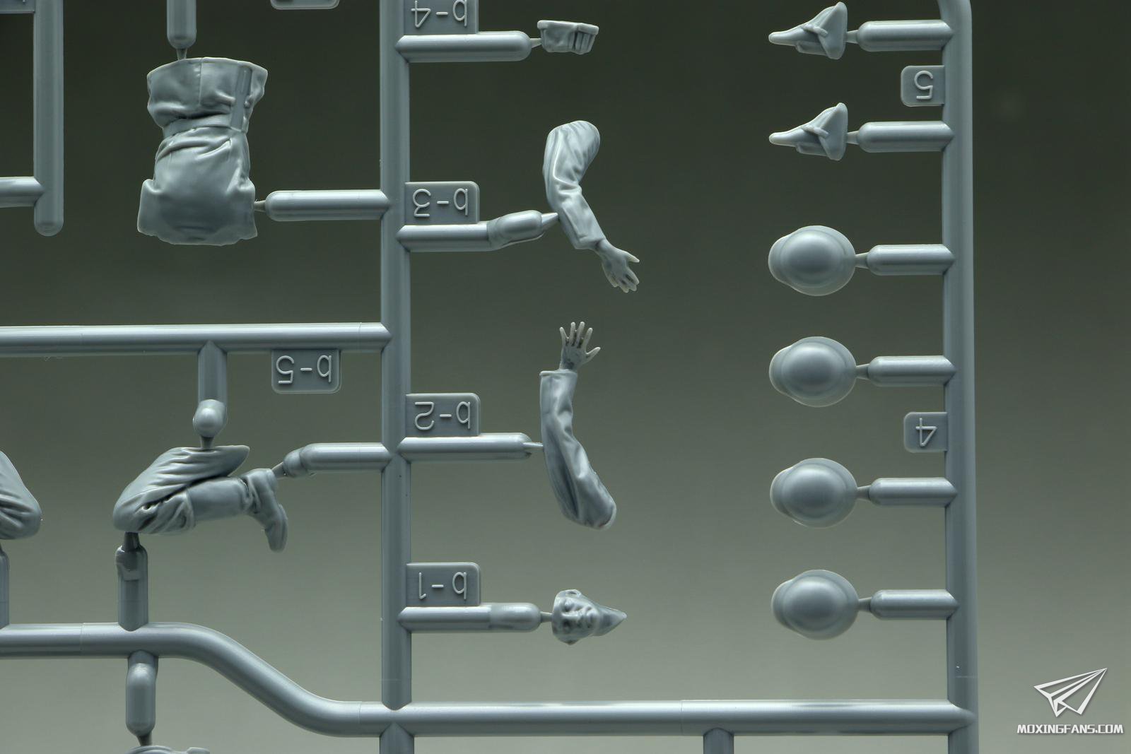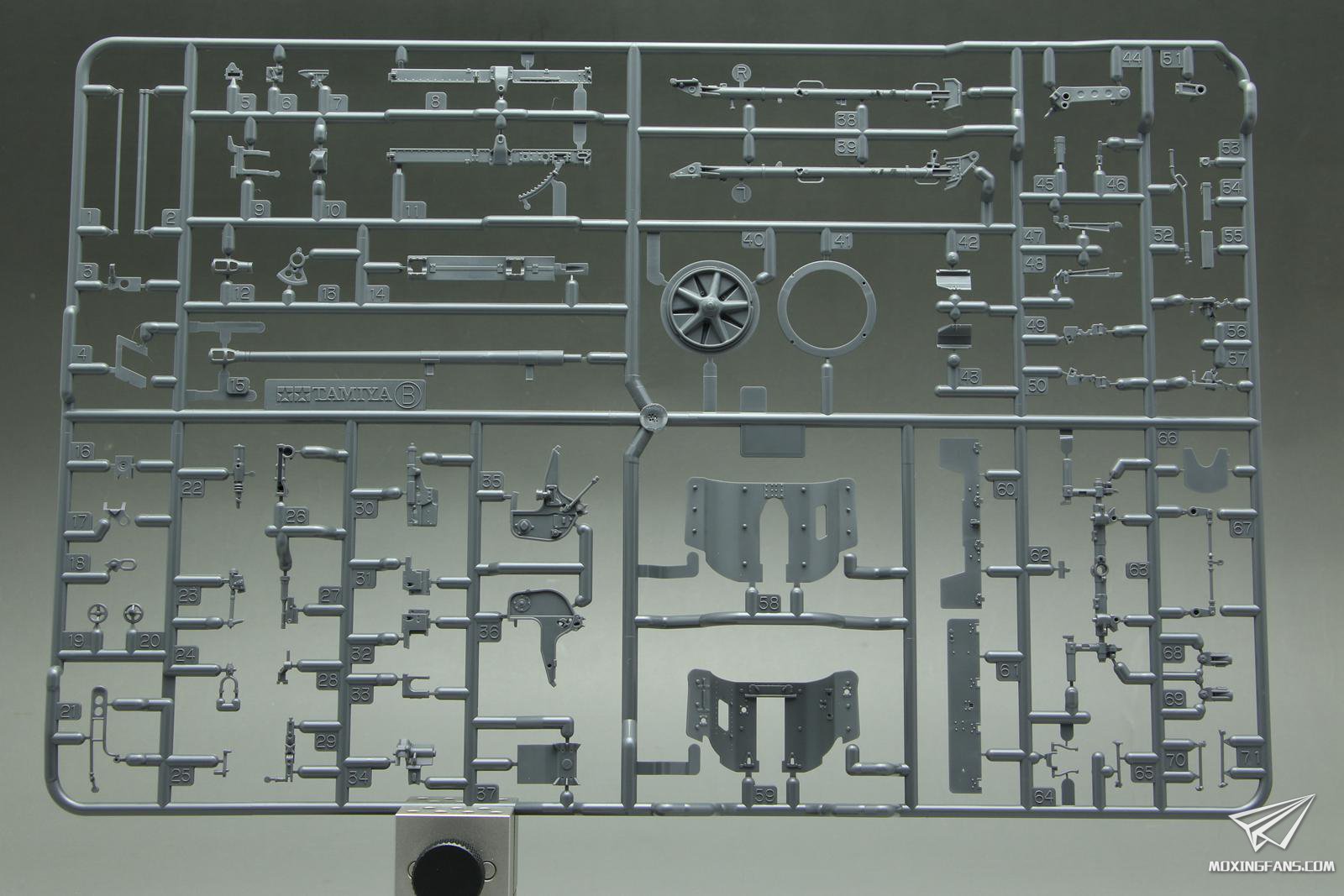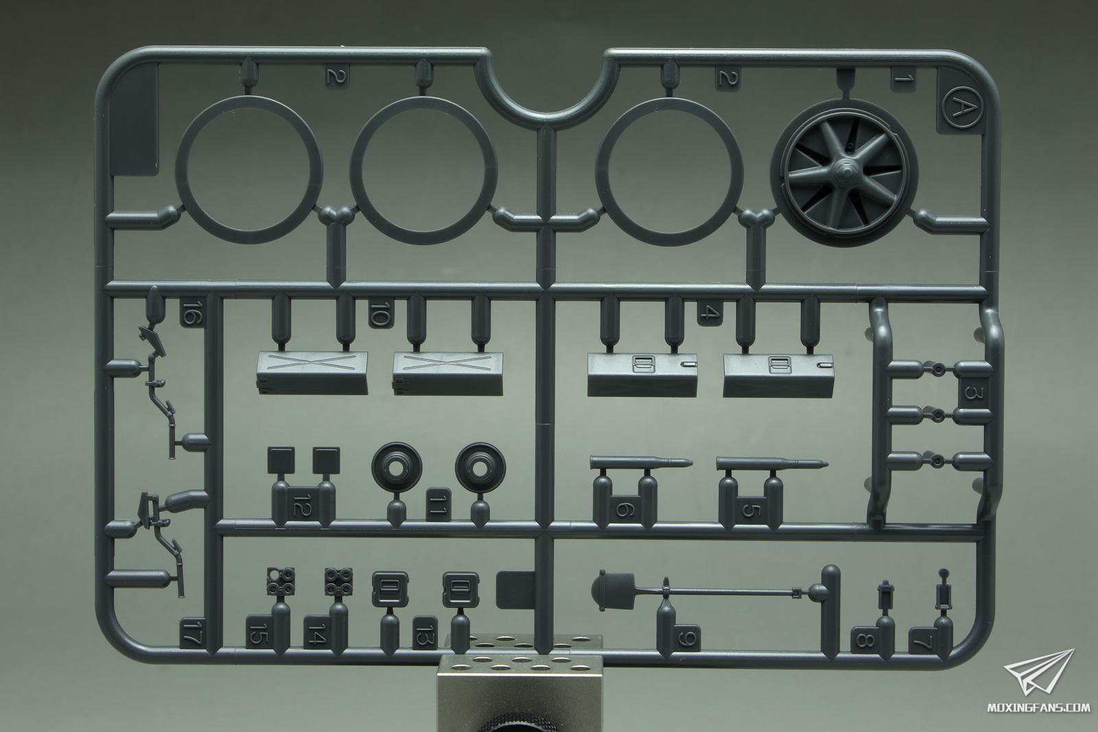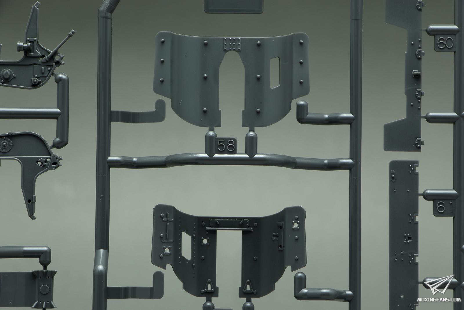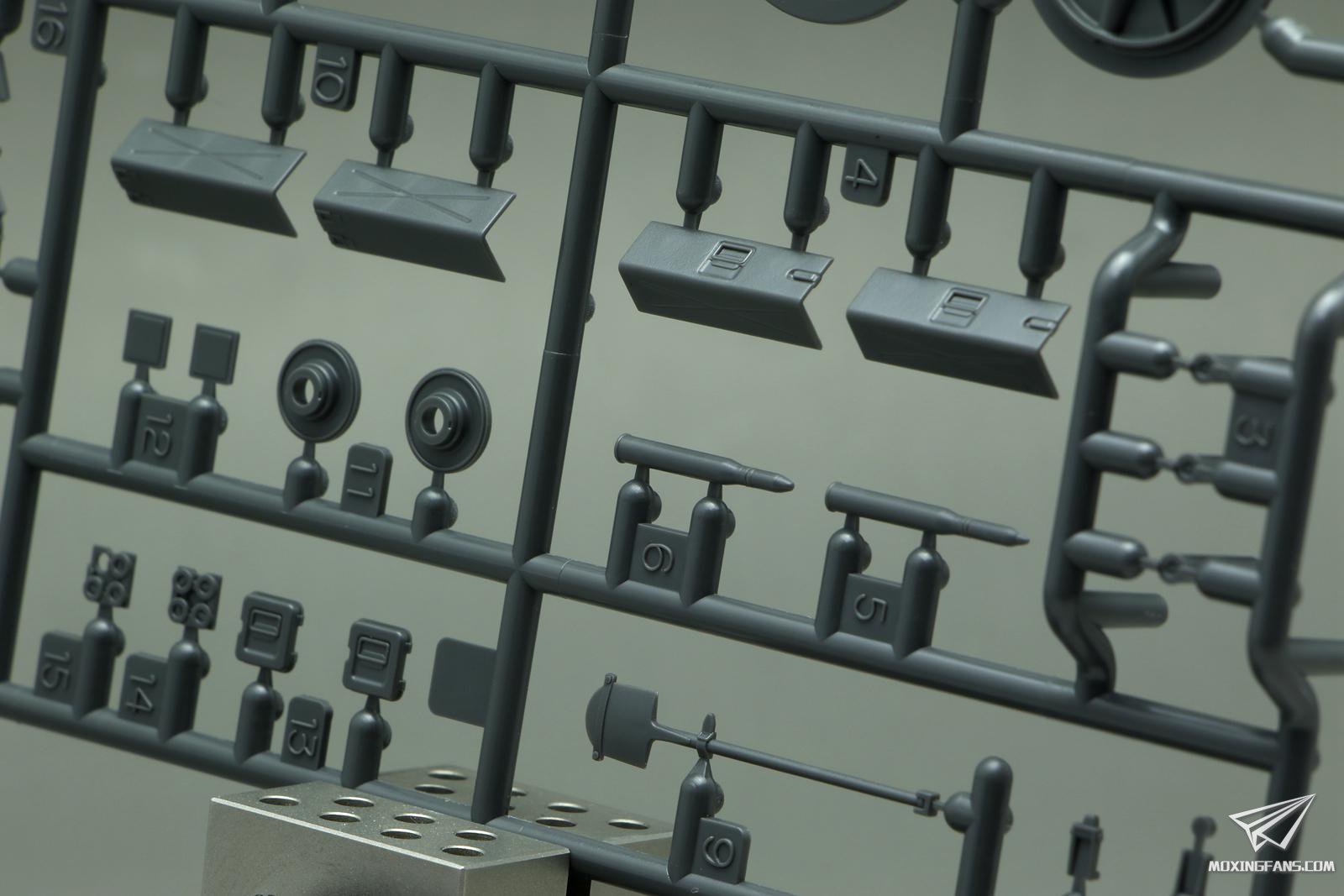 零件不多,一共有四板,还有四个胶套,没有水贴和蚀刻片。塑料为深灰色,兵人板为浅灰色。