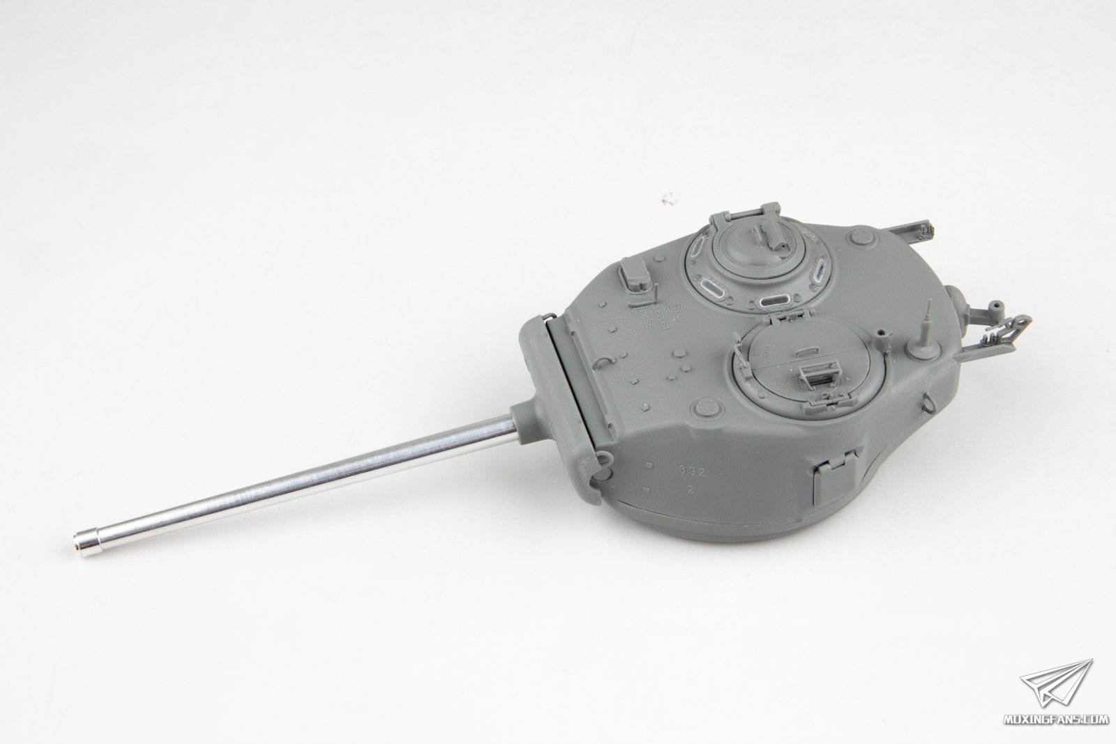 ▼ 炮塔部分的制作没有什么难度,因为金属炮管较重,炮盾转轴处建议使用快干胶加粗一下,否则容易不举,M2机枪制作成了遗失状态。