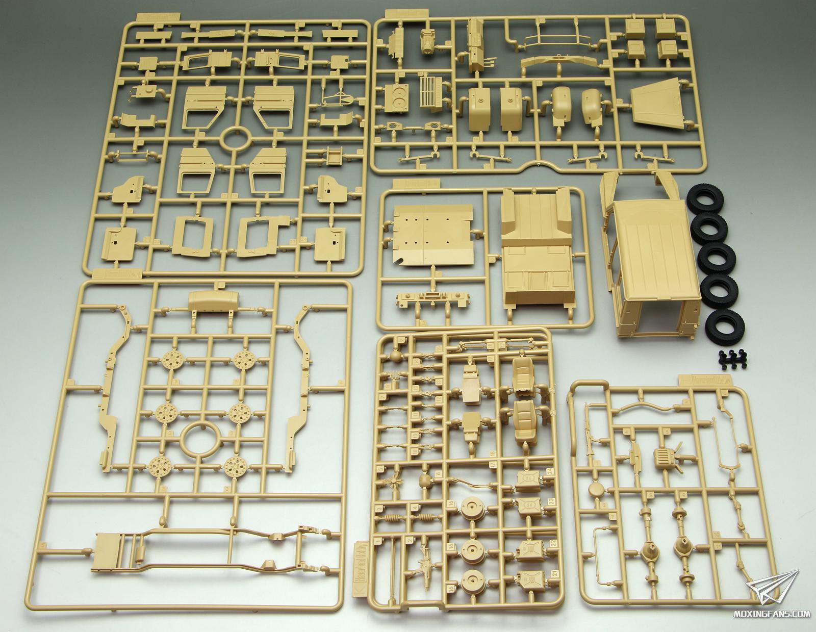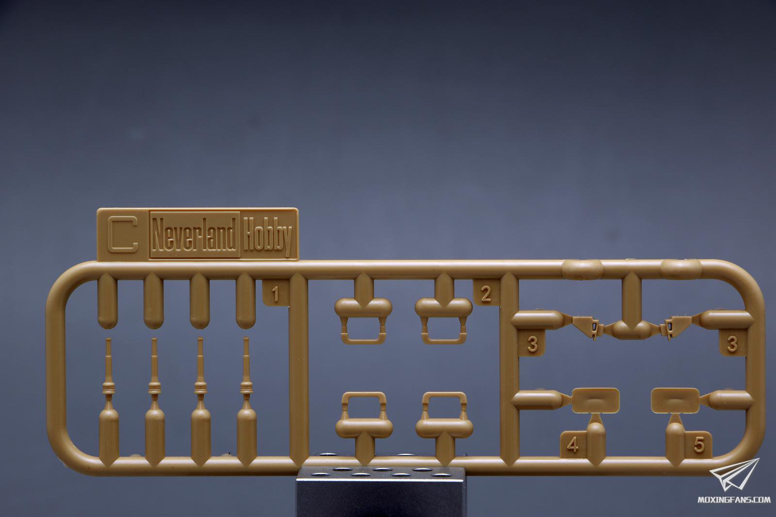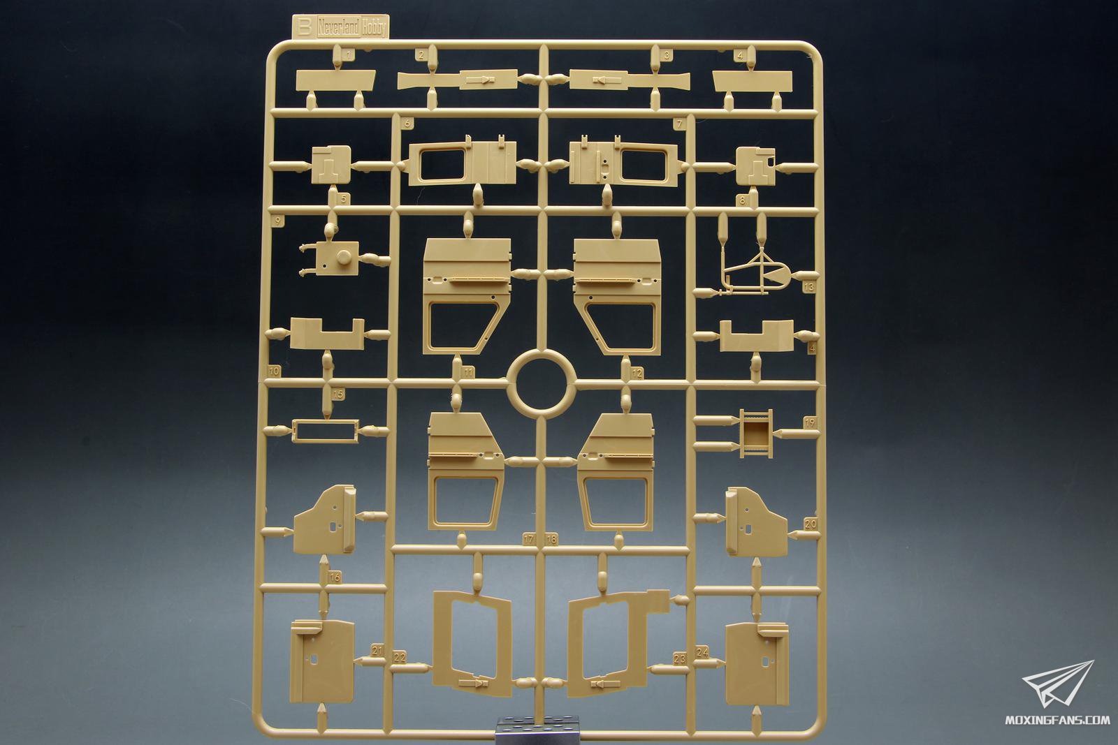 车体虽然不大,但板件却是不少,一共有十一块板件(含透明件),硬质橡胶轮胎五个,3D打印大灯护栏一副,后视镜银色反光贴一对,蚀刻片和水贴各一张,其中还有车窗涂装遮盖帖子一张,这个在配置丰富的飞机模型套件里会有,在陆地模型里也有,名副其实的配置丰富,厚爱玩家了属于是。