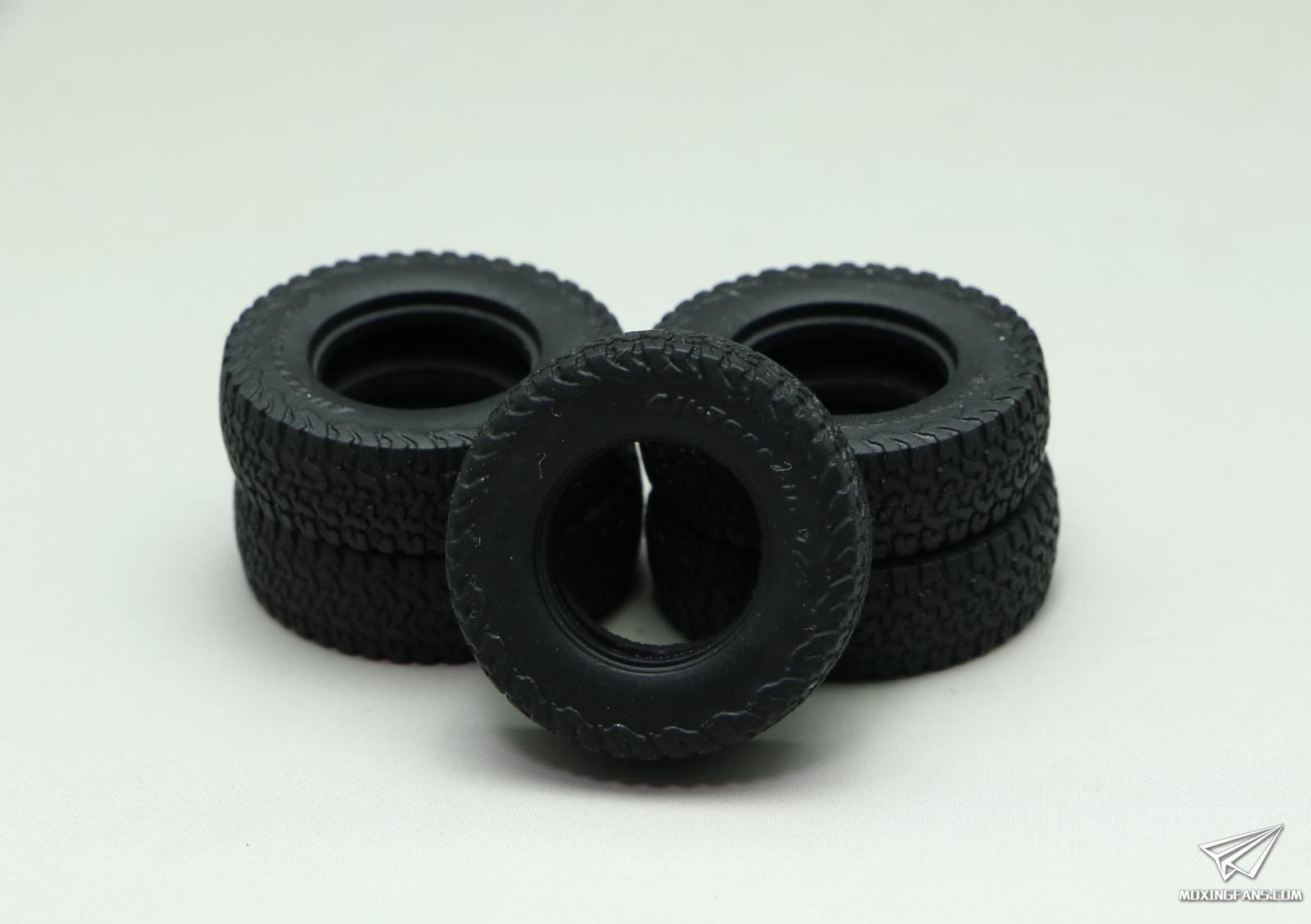 五只橡胶外胎,质地比较硬朗,胎纹清晰,侧面可见LOGO,无合模线。