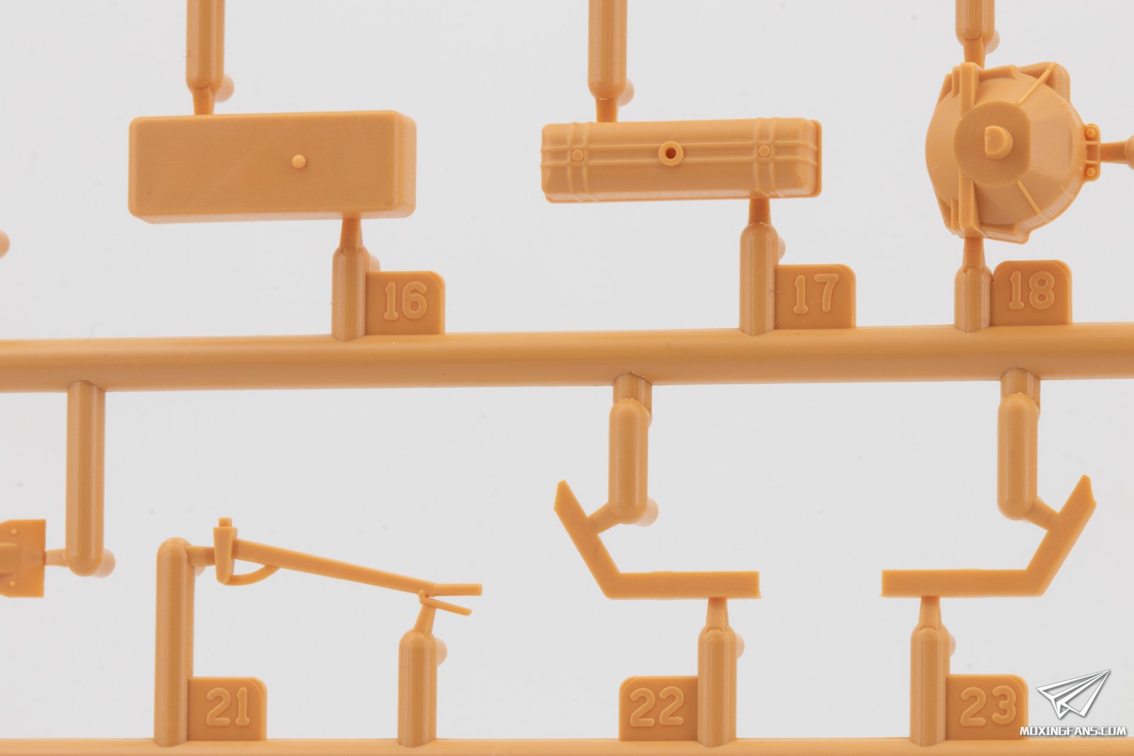 ▼ 其他零件的细节,套件提供了发动机和散热水箱等零件,是一款全内构套件。