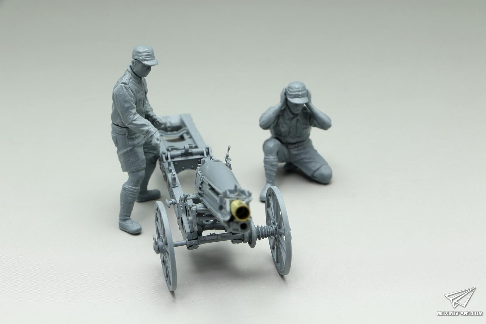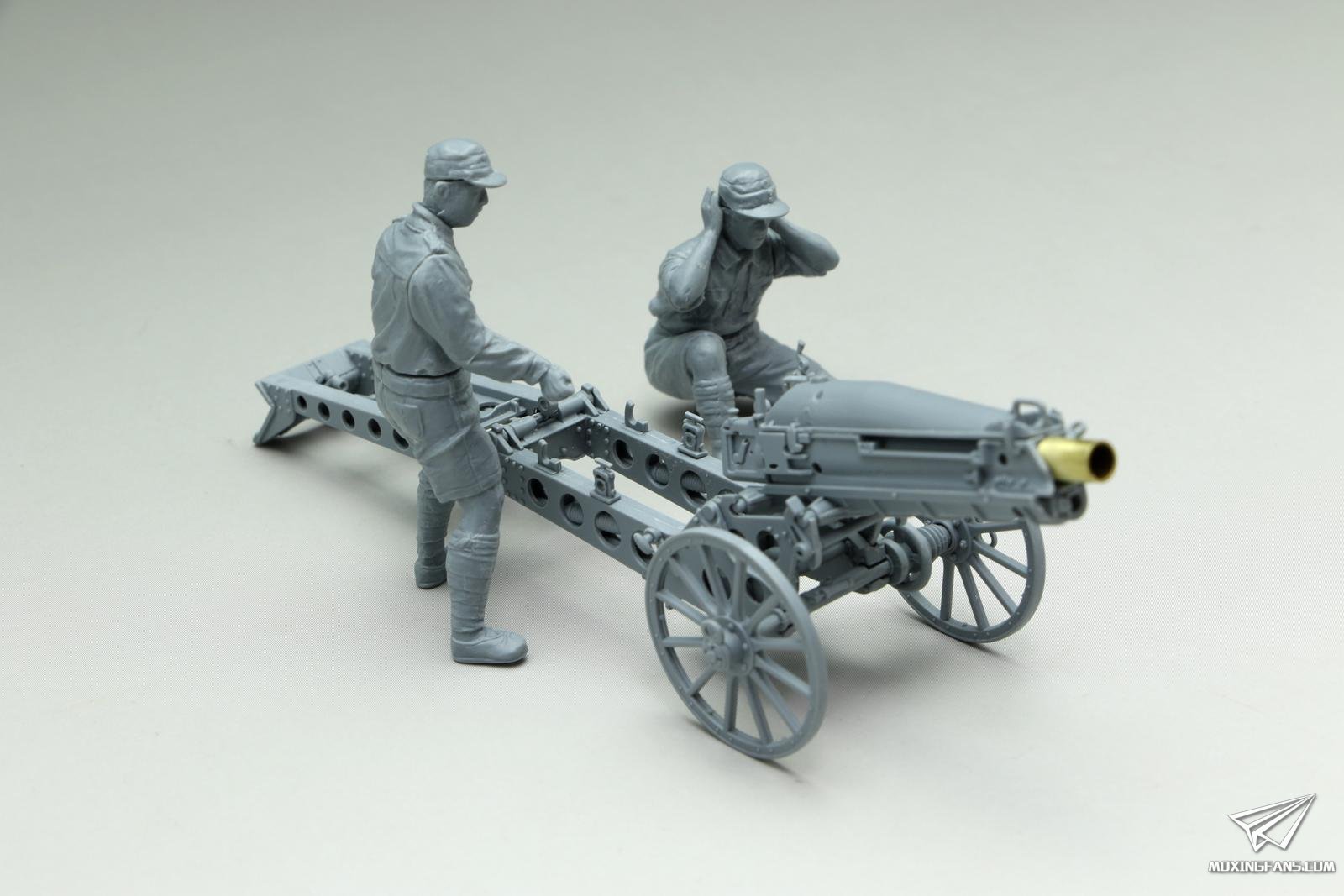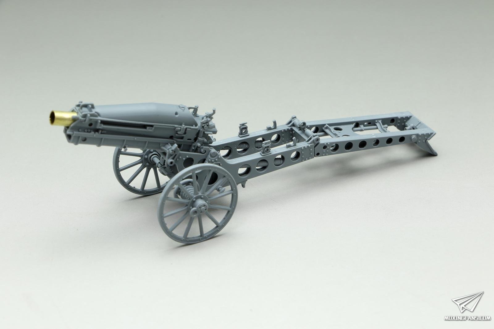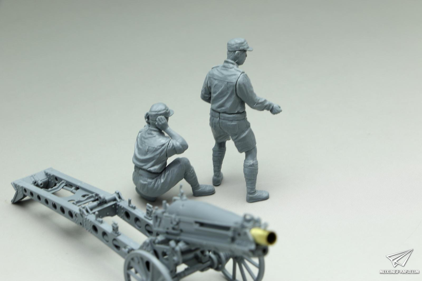 简单测评: 该套件零件不多,组合度好,开模犀利,炮身可俯仰,金属炮口,3D打印件弹药,整体的细节表现较为锐利,合模线也控制的比较好,组合度尚可。说下不足,兵人细节一般,组合度不太好,躯干和四肢接缝较大。