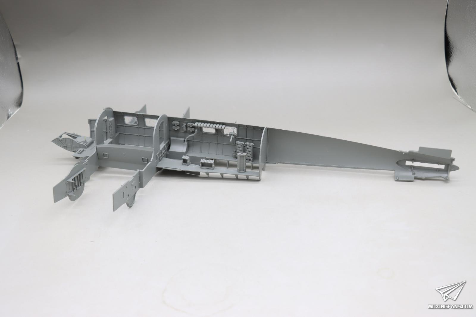 然后是和一侧机身粘合,这就是为什么说上一步中的机身结构件必须做的很严丝合缝的原因,否则后期和机身粘合会出问题,最终导致飞机机身出现大问题。