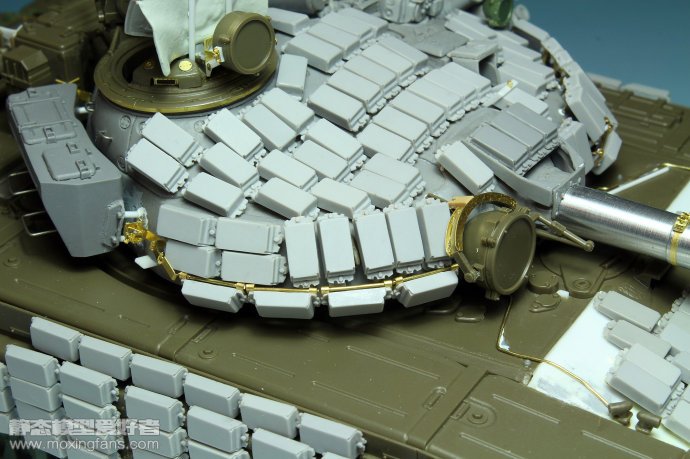 T-72B应该算是外观很复杂的坦克之一了,虽说小号手会在未来推出,但是可以肯定,小号手的72B会是类似于T-90的版本:双销履带,整体式橡胶前挡泥板,全新的横风传感器。而悲剧的是因为小号手的T-90有悲剧性型号穿帮问题,所以可以判定他出T-72B的话也一定是悲剧多多。 ![]() 当然,之前说的都是后话了,因为这个作品很早之前就开始动工了,可以追溯到2012年初,当时还没有MENG的T-90A和号手的T-90上市,所以开工的时候几乎不不用经过任何思考就直接选择了田宫的T-72作为母体进行改造。改造件自然是MINIARM的树脂产品。我仅仅购买了炮塔,没有买车体的改件。因为MINIARM的车体改件是改造成类似T-90车体样子的版本,即一体式橡胶前挡泥板,我称其为后期样式(我不擅长研习俄军车辆,所以我的称呼可能存在错误),而我想做的却是战斗在格罗兹尼的早期样式。
