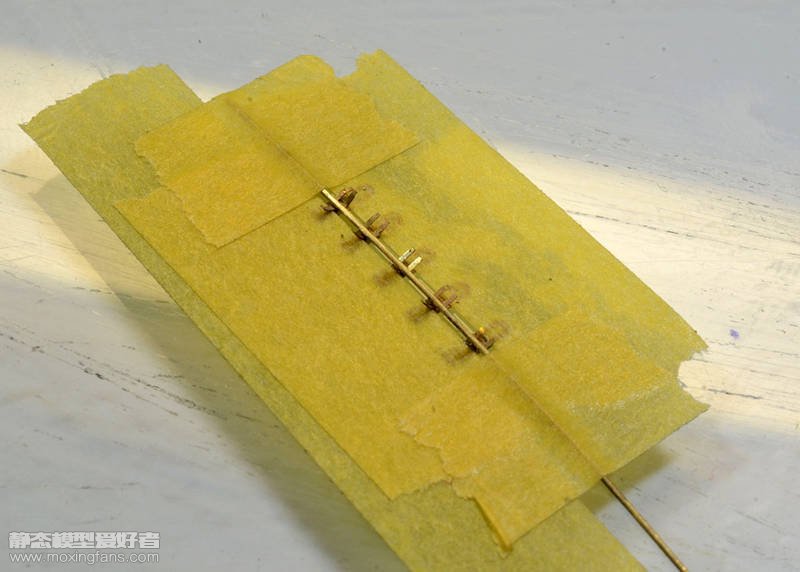 ![]() 我使用玻璃垫底,将折页用遮盖带固定在玻璃上,使用黄铜棒作为轴,小心的完成折页。