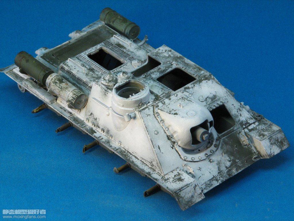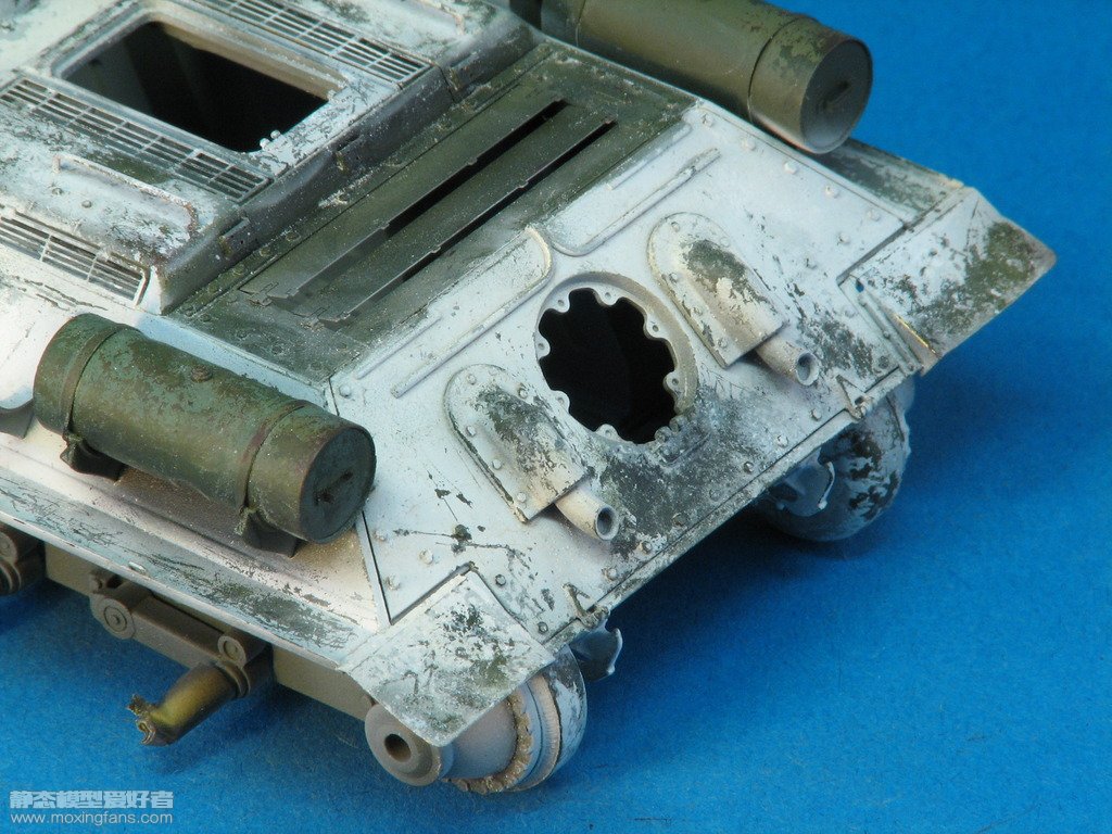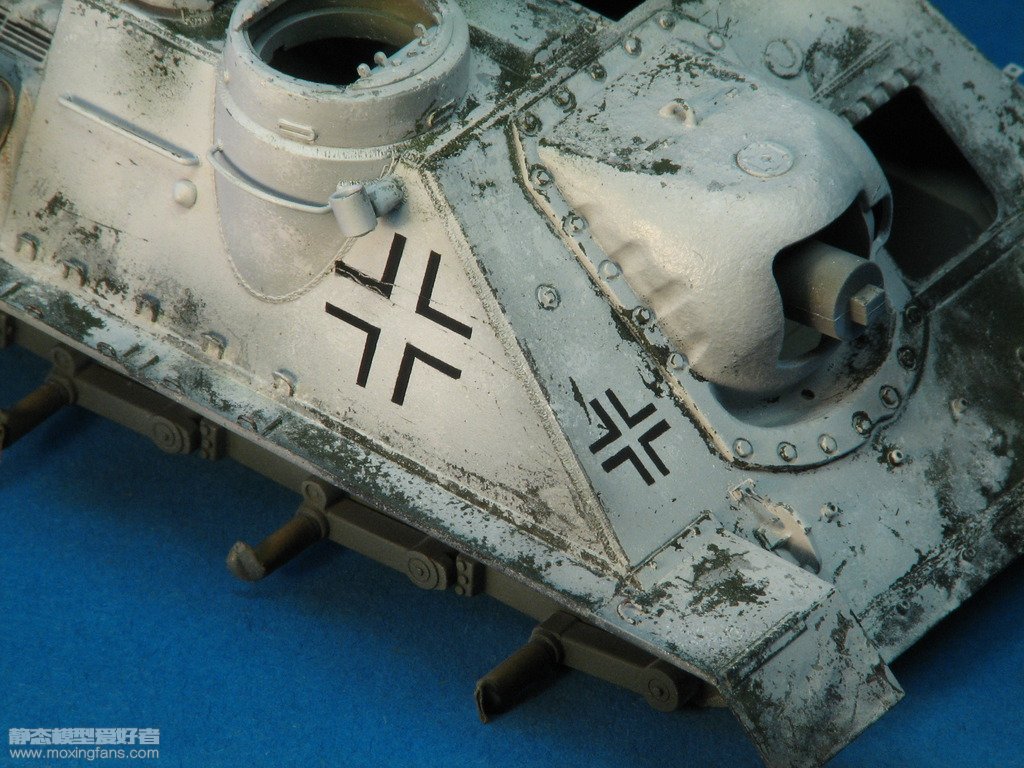 由于是缴获型,所以水贴并不好找,使用遮盖带遮盖喷涂德军标识,使用牙签在其表面制作一些划痕效果。