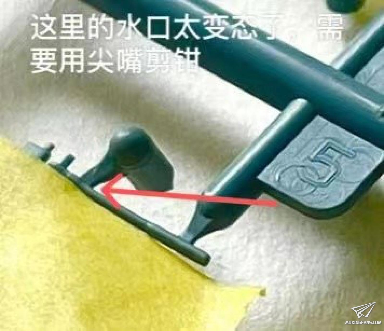 Step 3.打磨水口,打磨方法和打磨PE的方法一样,用夹得住的镊子夹持零件,方法多样,你怎么舒服怎么来