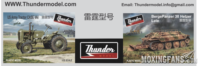 今天在各个媒体上流传着这样一张图片,是一家新起的模型厂家,名为:迅雷,英文名字:THUNDER MODEL ,没错,就是那个迅雷。图片上放着两款新品1/35模型,分别是:美军拖拉机CASE VAI和追猎者装甲回收车后期型。图片上的官网的网站还没有做好,应该是一家新公司无疑。这两款新品瞄准了树脂件和别家的产品空当,题材选择的非常不错,期待进一步动作。