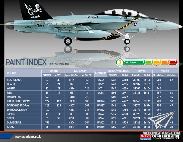 爱德美刚刚发布了一款新品:1/72比例的F/A-18F VFA-103中队MCP版,所谓的MCP应该是分色版的意思。封绘上的“NEW TOLLING”明确指示出这款为新开模的模型,并非和其他厂商合作的版本。不得不说现在免胶分色是模型行业的一个风向标,像是富士美,MENG,爱德美这些国内和国外的厂家都在尝试这种的模型,将需要用胶水粘接的军事模型向高达那种免胶分色的方向靠拢。虽然脱离了涂装和旧化可能会损失一些细节,让很多高端模友嗤之以鼻,但是这种免胶分色的方式无疑大大的拉低了军事模型的门槛,将更多的新人拉进坑来,可谓有利有弊,究竟日后这种模式究竟能否发扬光大还是让我们拭目以待吧。