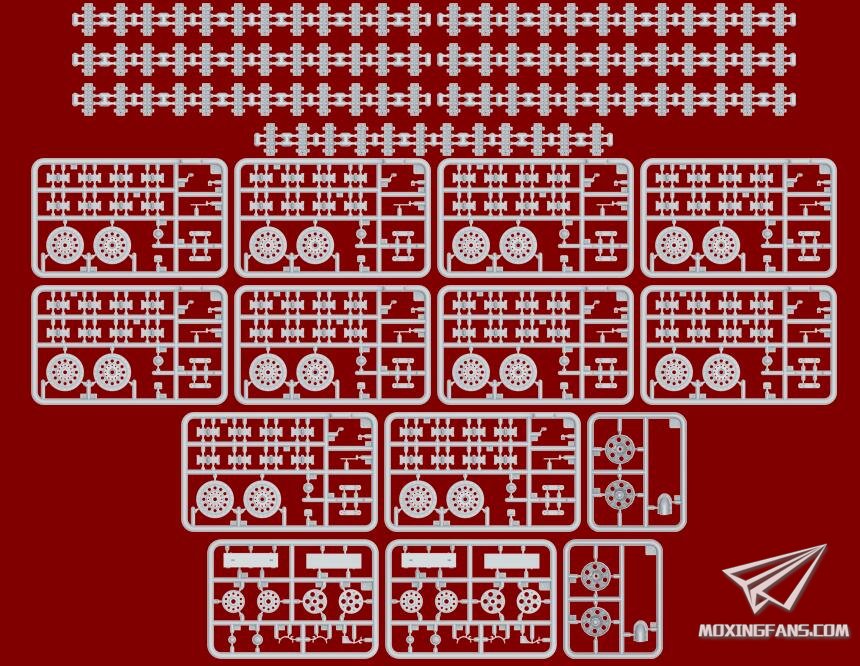 MINIART发布了一盒最新的套件,为1/35比例 T-34/85坦克行走部分。从官方给出的照片来看应该就是之前推出的SU-85/100坦克歼击车的零件,这次仅仅为取出来单卖。套件中包含了路轮,驱动轮,惰轮和活动履带等,不得不说MINIART对“一鱼多吃”的做法了解绝对深刻。