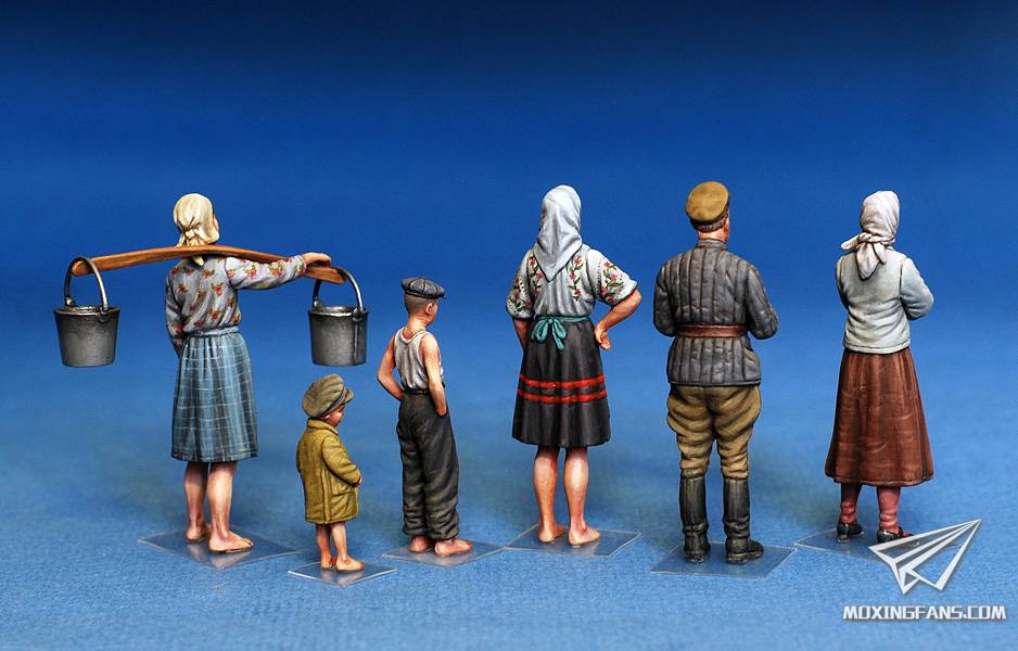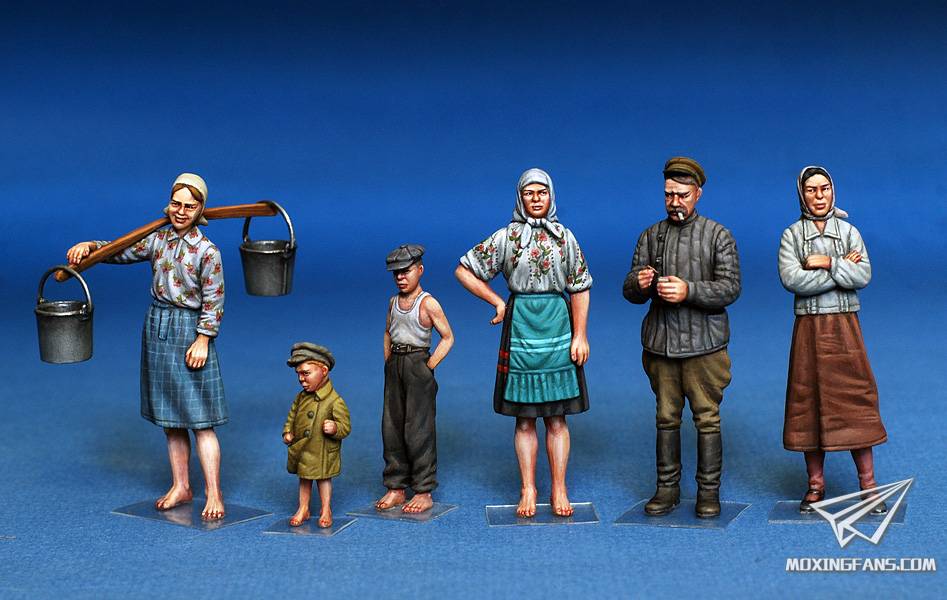 MINIART发布了一款1/35比例兵人新品,题材为二战时期的苏联村民,货号38011.套件共包含50个零件,共6名人形,各个年龄段的人物都有,从封绘来看动作也都不错,相信是搭配场景的利器。