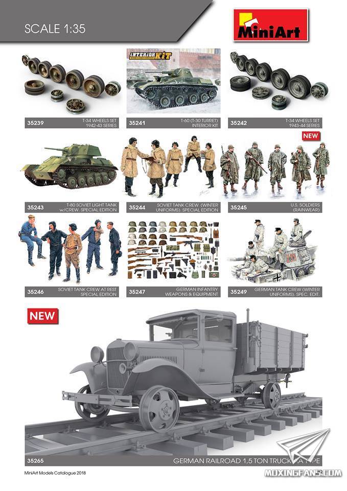 MINIART又发布了一部分最新的年刊。这次的3张年刊中有一款德国铁路1.5吨AA卡车很有趣,反坦克单兵装备也很吸引人,另外的新品包括一套身穿雨衣的美军兵人,以及几套场景用品等。