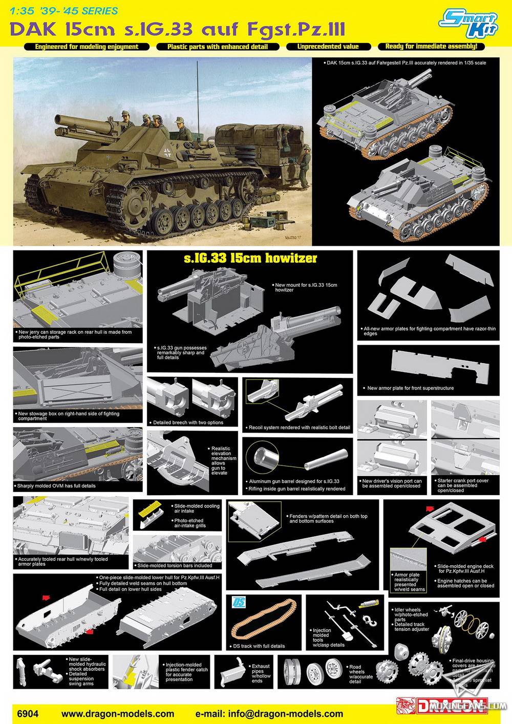 【威龙 6904】1/35 德国三号150mm sIG33自行火炮北非沙漠改型板件图和说明书