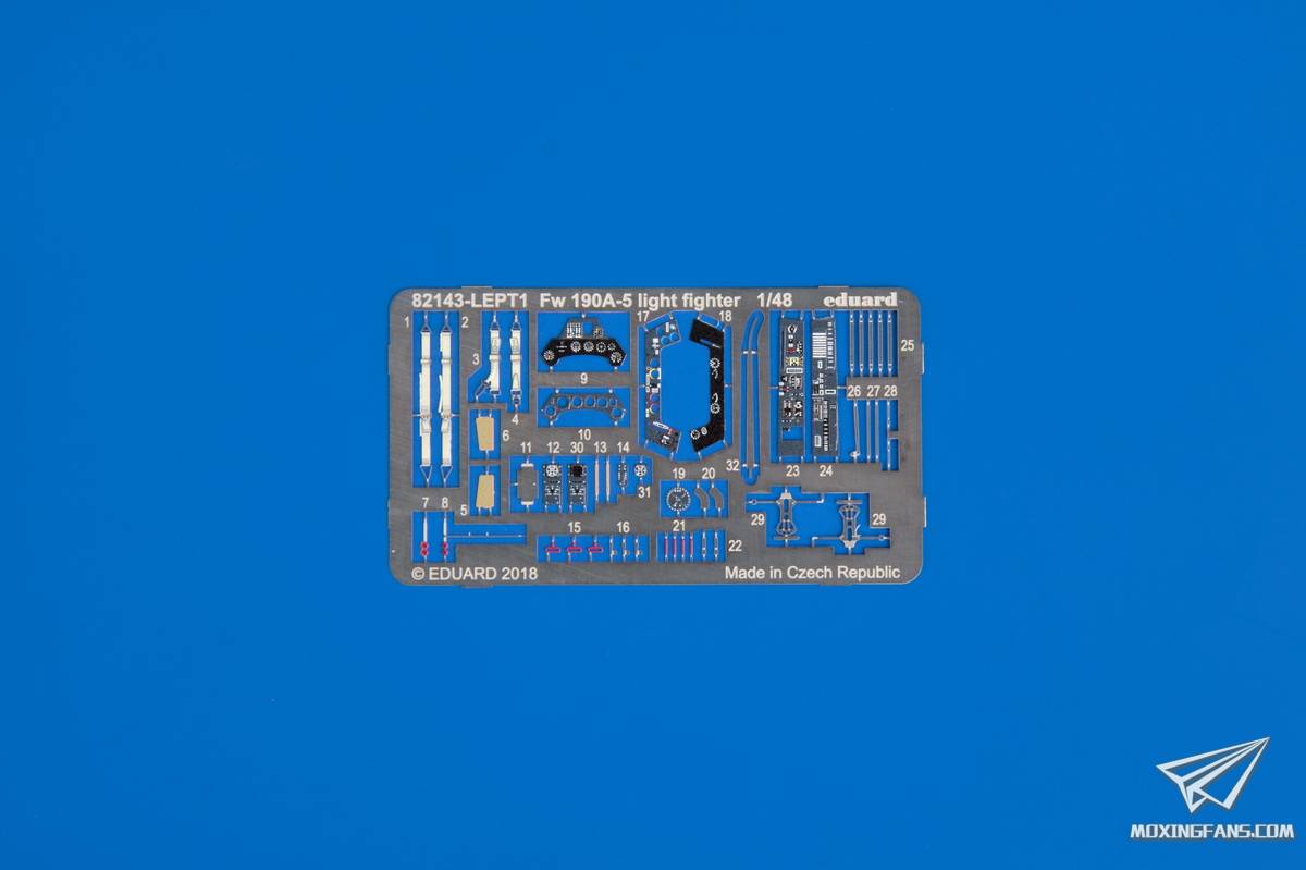 牛魔王(Eduard)去年发布了一款全新开模的1/48比例的Fw 190A-4战斗机,纠正了之前产品的一系列考证问题和组合度问题,赢得了模友们的一致好评。为了丰富自己的产品线,牛魔王又顺势发布了这款190A-5战斗机。和牛魔王的其他豪华版套件一样,这盒套件附带了标志性的彩色蚀刻片,提供了5种非常不错的涂装可选,应该是目前此题材的决定版。