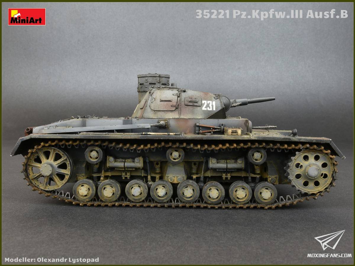 MINIART发布了一款新品三号坦克B,附带一组早期德国坦克乘员组兵人(35191)。MINIART之前已经推出过一批三号B,三号C等非量产型号的三号坦克,此次推出的这盒三号B也算是对产品线的补充。根据官方解释,这盒套件的特点如下: 包含透明件;包含蚀刻片;包含活动履带;包含炮塔内构;所有舱门均可制作成打开或关闭状态;5种涂装可选。