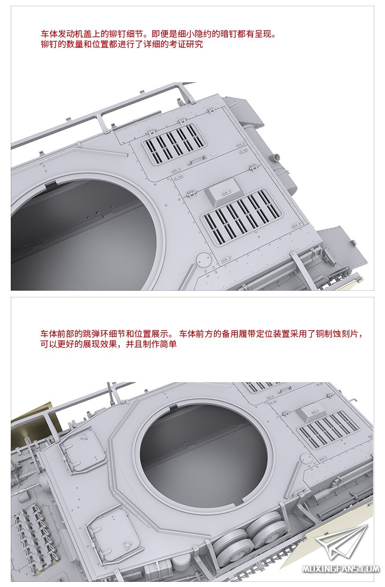 边境模型(BORDER MODEL)的这款四号G在发布之初就引起了模友们的广泛关注,终于有新厂家敢动四号这个题材了,确实勇气可嘉。今天,边境模型在贴吧发布了更多关于这款四号坦克的细节,从描述来看这款四号将配有蚀刻片,金属炮管,金属侧裙,金属烟雾弹发射器,半拼接履带等配件,多处的零件也有不同特点的替换件可选。整个项目耗时一年,看上去厂家还是很用心的,预计将于12月底上市。 ![]() ![]() ![]() ![]() ![]() ![]() ![]() ![]() ![]() ![]() ![]() |