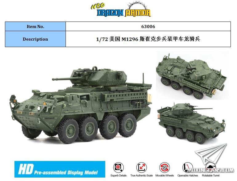 【威龙 63006】1/72 美国M1296斯崔克步兵装甲车龙骑兵成品预订单