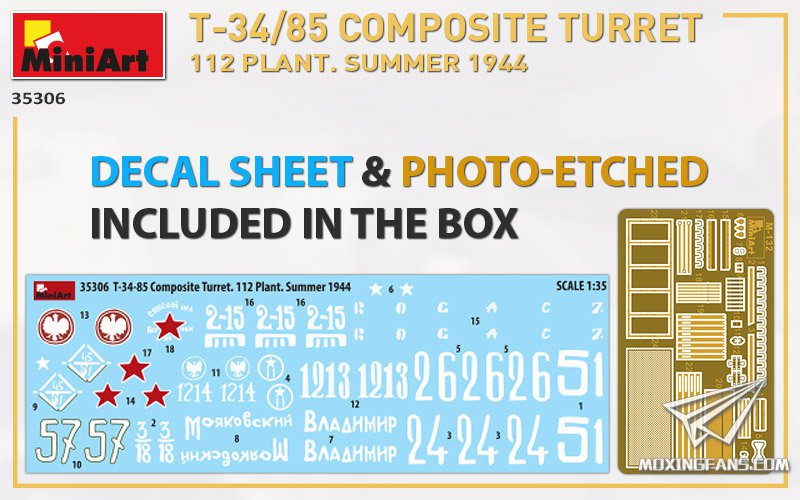 【MINIART 35306】新品:1/35 T-34/85中型坦克复合炮塔112厂1944年夏