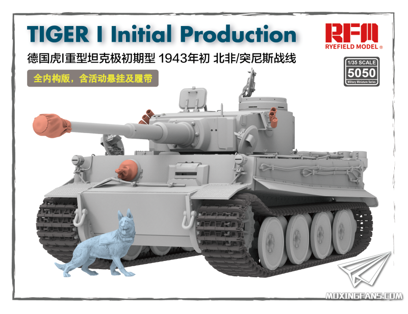 麦田模型(RYE FIELD MODEL)的这款全内构虎式坦克今天正式开启预售,官价为269元,同期推出的还有官方套改(RM-2006)。从官方的介绍来看,这盒套件主体部分基于之前推出的全内构虎,新开了炮塔,空滤,主动轮,炮塔尾箱,排气管,侧裙板,挡泥板和发动机管线等,套件中还附带3D打印的部件和树脂德国牧羊犬,配有活动履带和活动悬挂。 目前已经开启预订的商家: