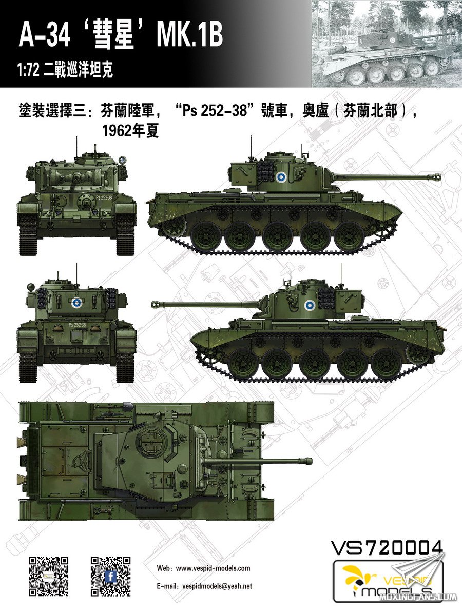 【黄蜂 VS720004】1/72 A-34"彗星"巡洋坦克MK.1B型官方成品照片更新