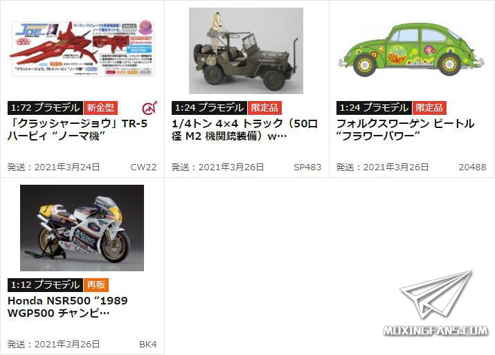 长谷川(Hasegawa)发布了3月份的新品及再版情报,大部分都是再版或者限定品,新金型有一款民用摩托TRZ250,值得一提的是还推出了一款1/350的中途岛海战状态的赤城,喜欢IJN的模友可以关注一下。