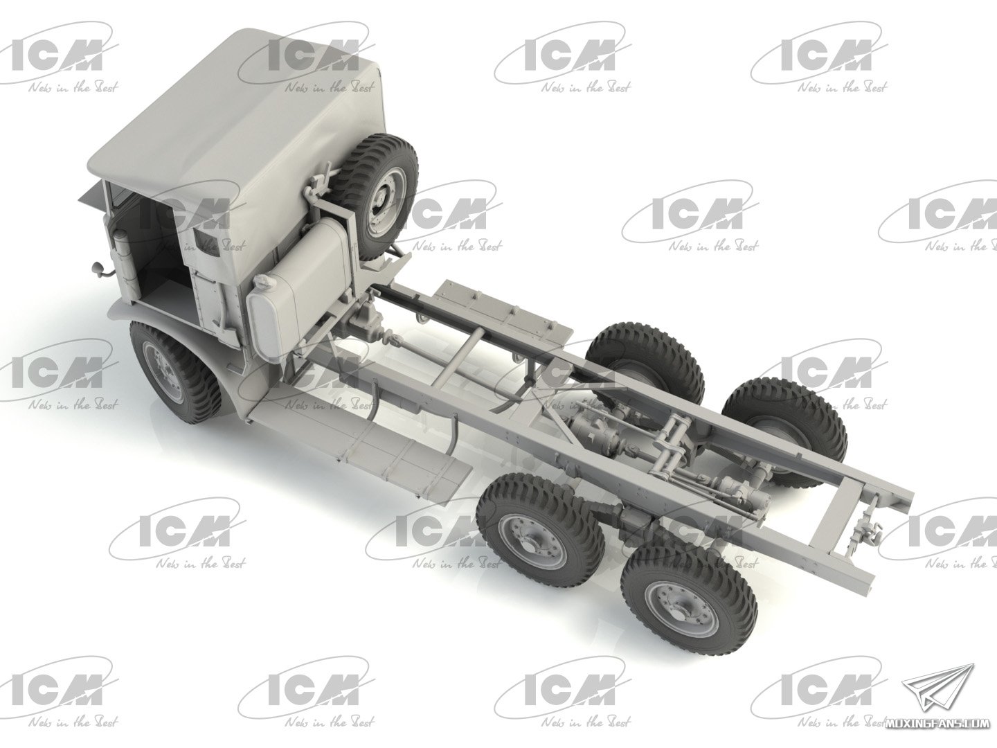 ICM官网发布了一款2月上市的新品:英国 Leyland Retriever 通用卡车(初期生产型),全新开模。目前这盒套件还处在设计图阶段,ICM只放出了几张设计图,并无更多信息,从图上猜测这盒套件可能配有橡胶轮胎和蚀刻片,前轮可转向。