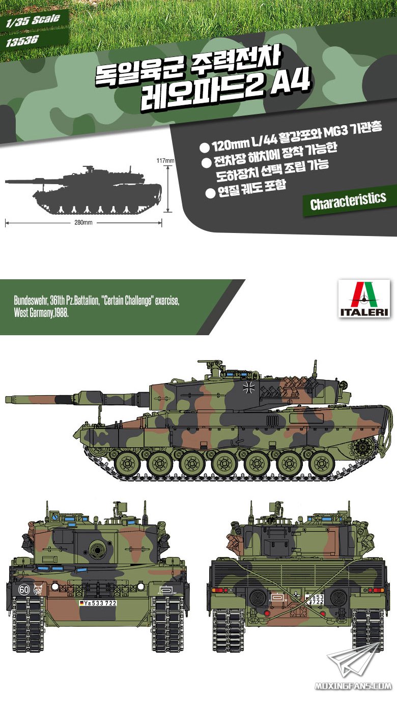 爱德美(Academy)发布了一款新品:1/35比例的德国豹2A4主战坦克。从图上巨大的意大利LOGO就能看出来,这是一款和意大利合作的产品,套件应该是意大利的,所以品质也就是可想而知了。